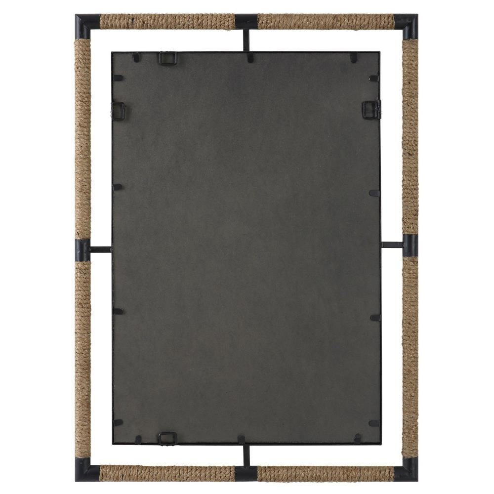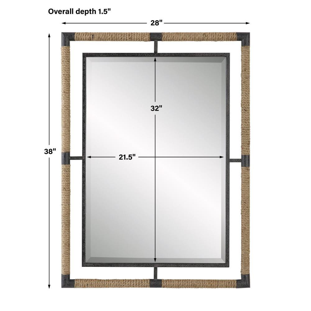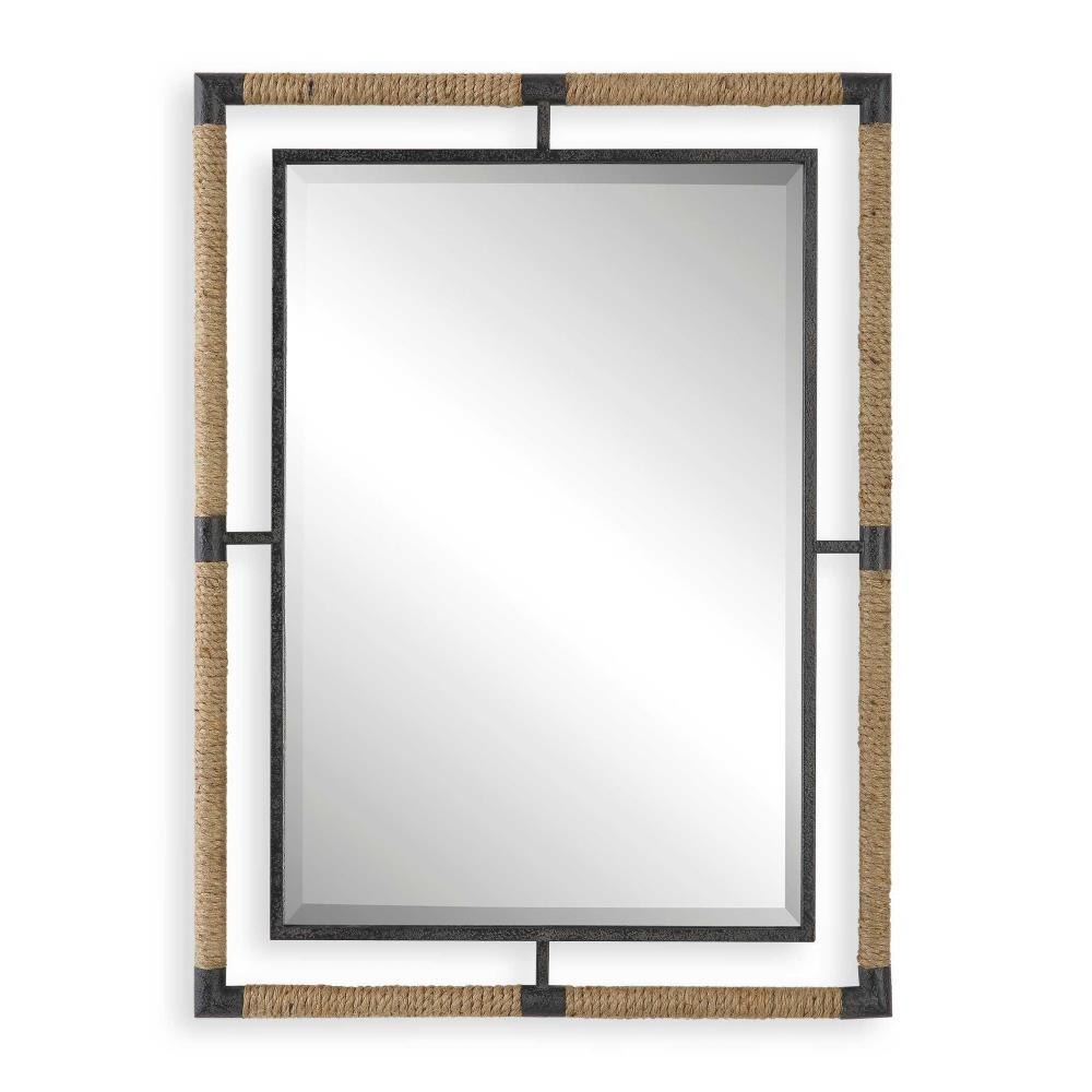 This Forged Iron Mirror Frame Is Finished In A Textured Rust Black That Is Wrapped In Natural Rope Bringing A Coastal Feel To Any Room. The Mirror Is Surrounded By A Generous 1 1/4" Bevel. May Be Hung Horizontal Or Vertical.