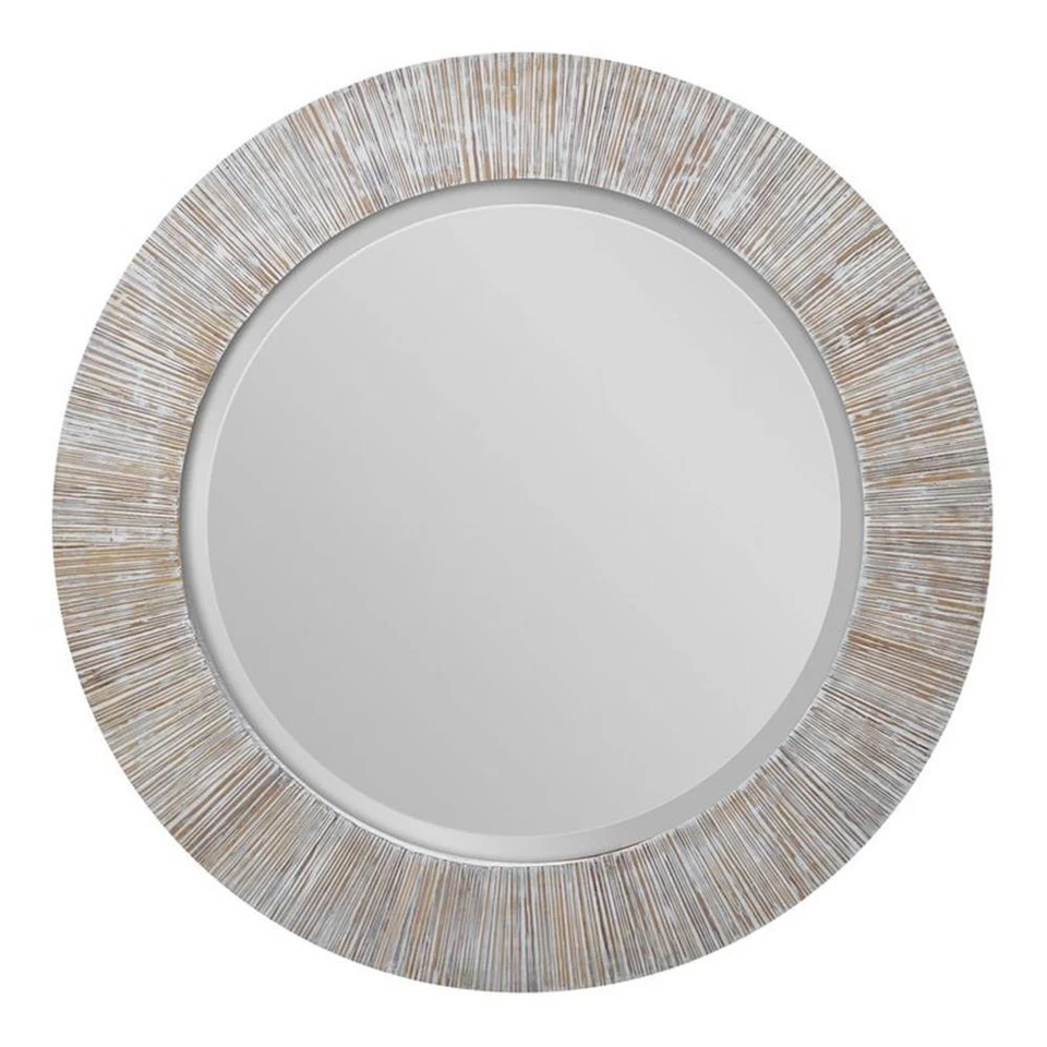 - Uttermost Repose Round Coastal Bamboo and Wood Mirror in White