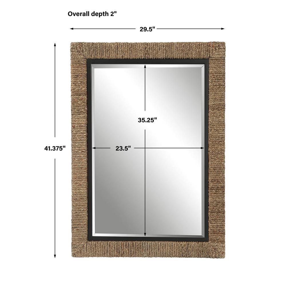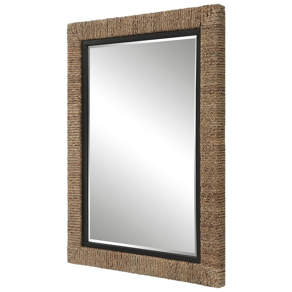 The Island Mirror Is Wrapped In Natural Braided Straw With Matte Black Iron Details And A Generous 1 1/4" Bevel. May Be Hung Horizontal Or Vertical.