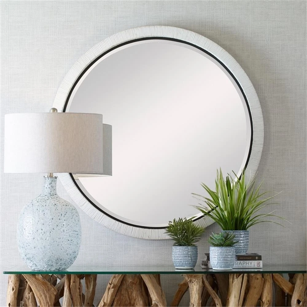 Uttermost Granada Round Contemporary Rattan and Iron Mirror in White