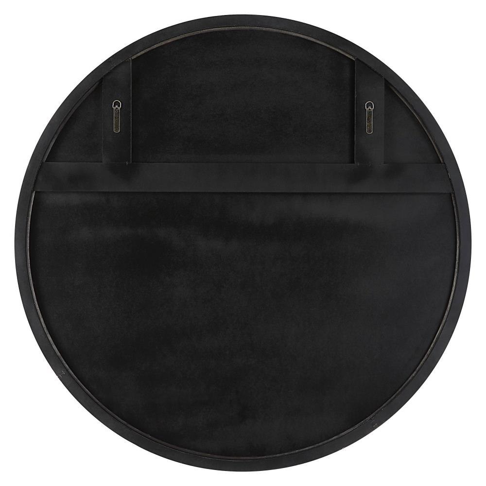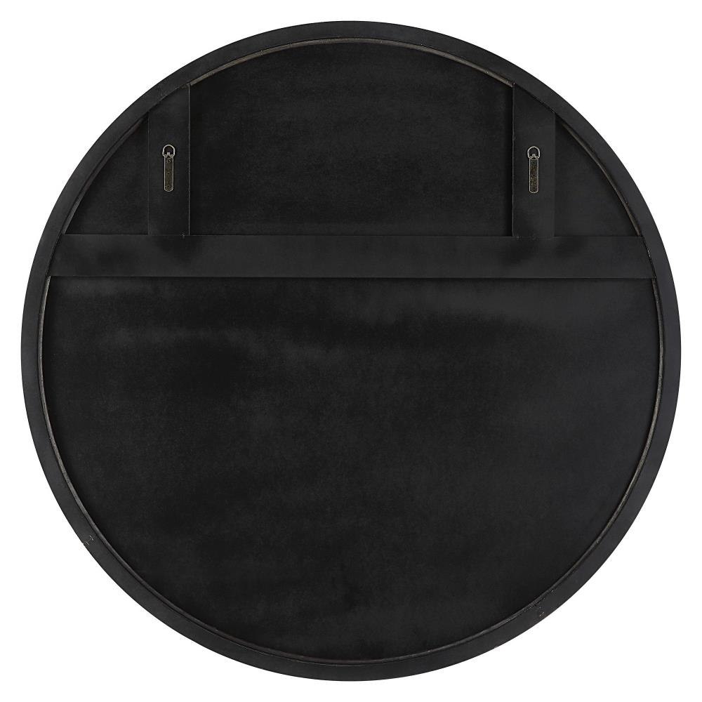 This Oversized Round Mirror Is Made From Solid Beech Wood Finished In A Matte Black, Adorned With Lightly Distressed Gold Leaf Wood Ball Details.