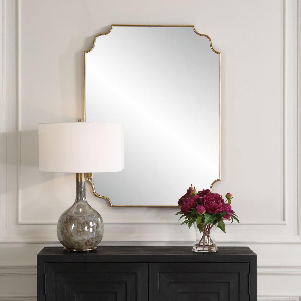 Elevate Your Space With This Updated Traditional Mirror Featuring A Petite Frame, Adorned With Graceful Curves, Finished In A Lightly Antiqued Gold Leaf Adding A Touch Of Timeless Elegance To Any Room. May Be Hung Horizontal Or Vertical.