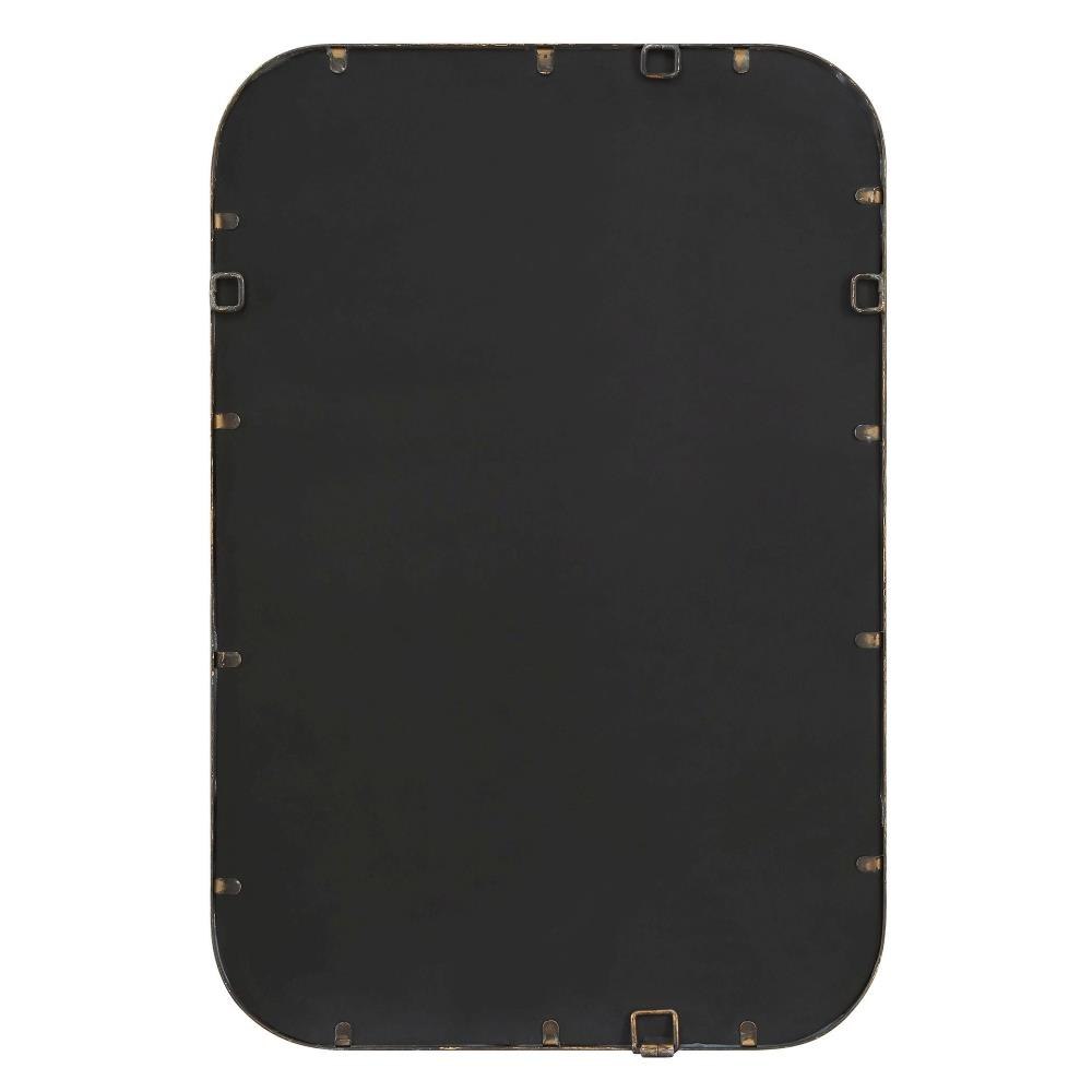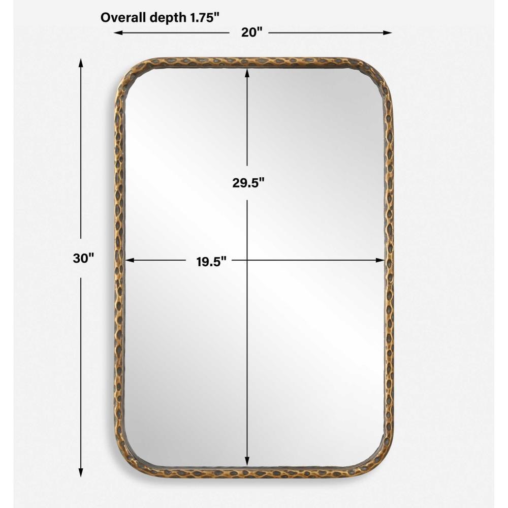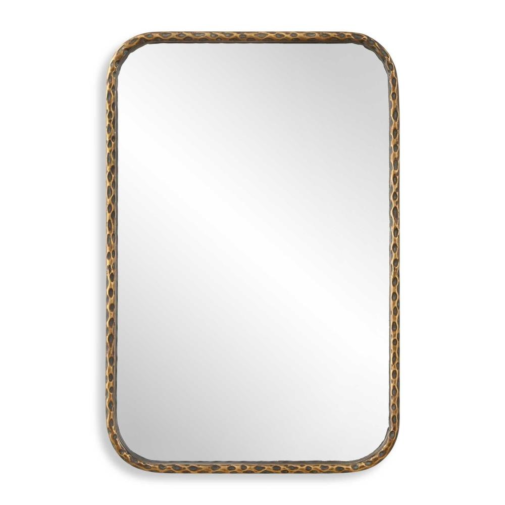 This Vanity Mirror Features A Hammered Textured Iron Frame Finished In An Aged Bronze With Intricately Knotted Detailing Adding An Organic Touch To An Otherwise Simple Silhouette. May Be Hung Horizontal Or Vertical.