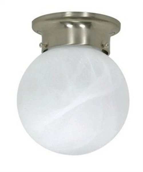 Ball Flush Ceiling Light Fixture - Alabaster Glass - Brush Nickel - SATCO-60-257