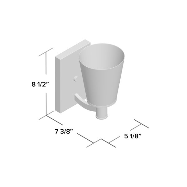 Cast a warm glow over your powder room vanity with this one-light bath sconce. Rated for use in damp locations, this metal fixture features a rectangular backplate, a curved arm, and a cylindrical socket in an understated solid finish. A white glass cone shade rounds out the design, softening the brightness from a single 100 W medium-base incandescent bulb - not included ensconced within. The manufacturer backs this product with a one-year warranty.