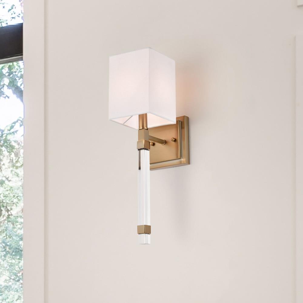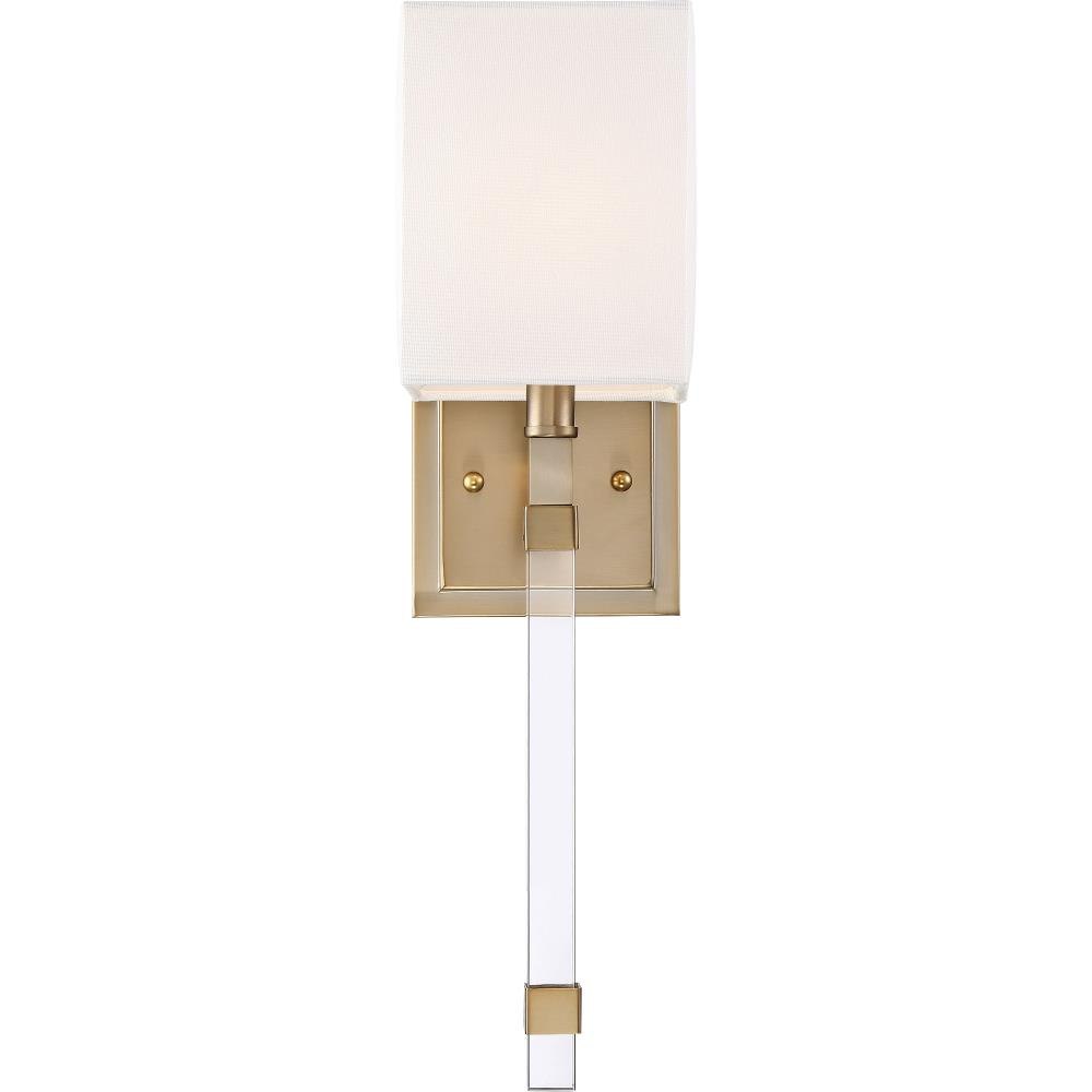 Tompson; 1 Light; Wall Sconce; Burnished Brass Finish with White Linen Shade