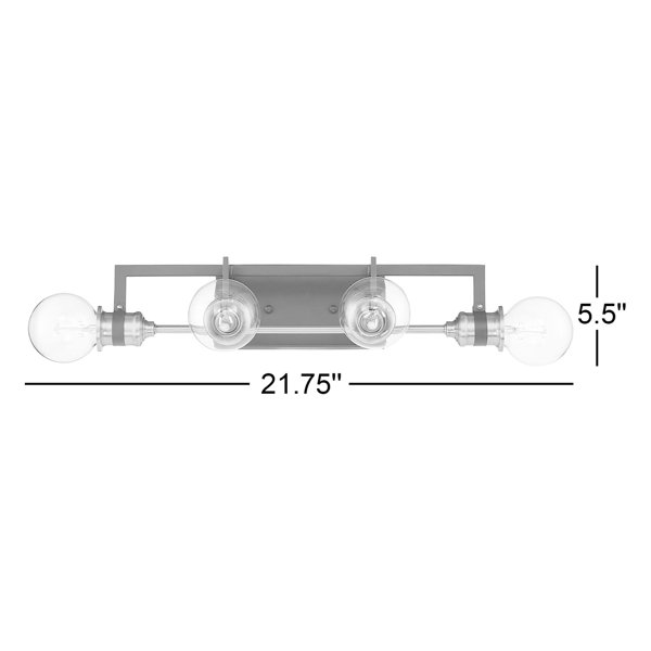 The perfect finishing touch for the guest or master bathroom, this vanity light has clean lines and a modern style that’s versatile enough to fit in just about anywhere. Made from metal, the mount has four bent arms in a black finish with brass-finished socks for an on-trend two-tone line. Four 60W light bulbs (sold separately) provide a soft light to illuminate your morning and evening routine. This hardwired luminary can be installed on a dimmer switch and is safe to use in damp locations.