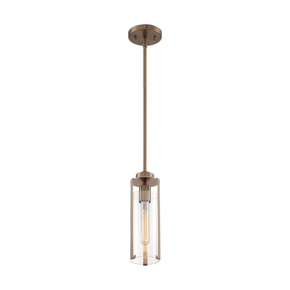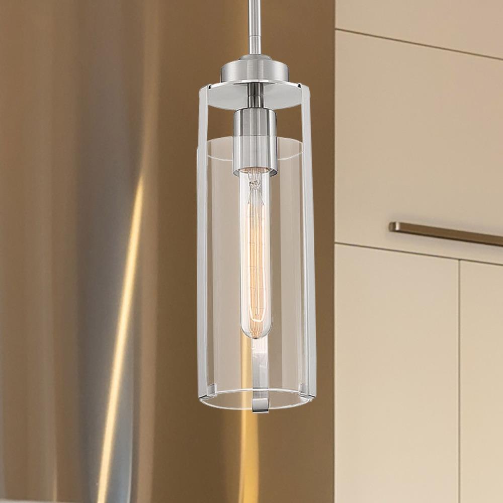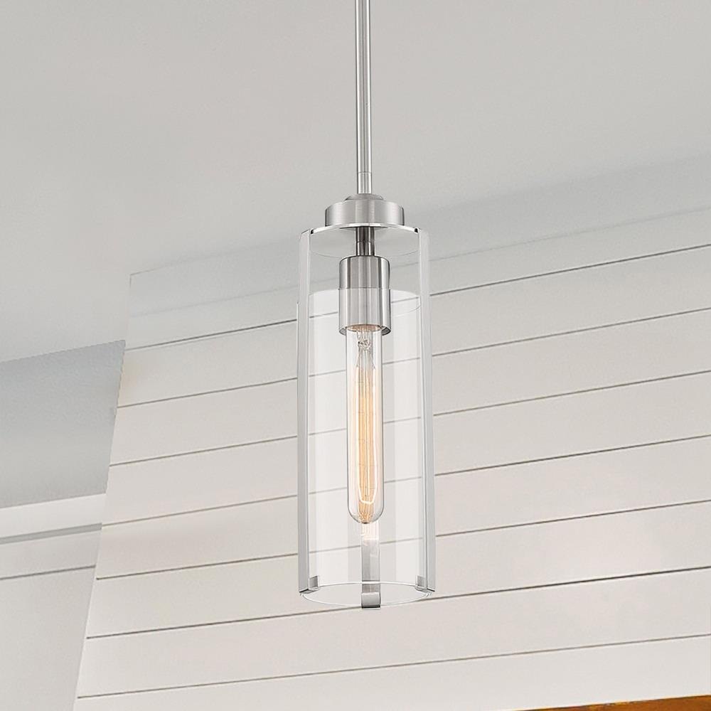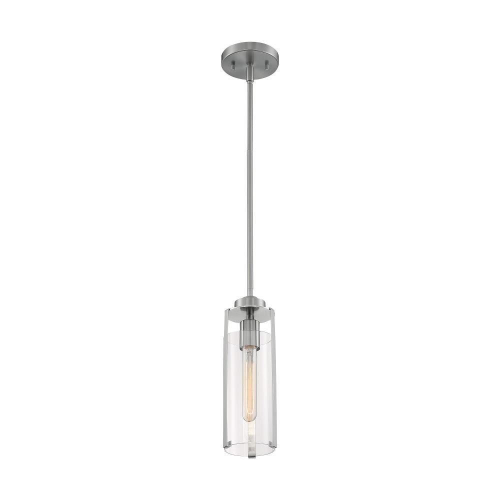Marina; 1 Light; Mini Pendant Fixture; Brushed Nickel Finish with Clear Glass
