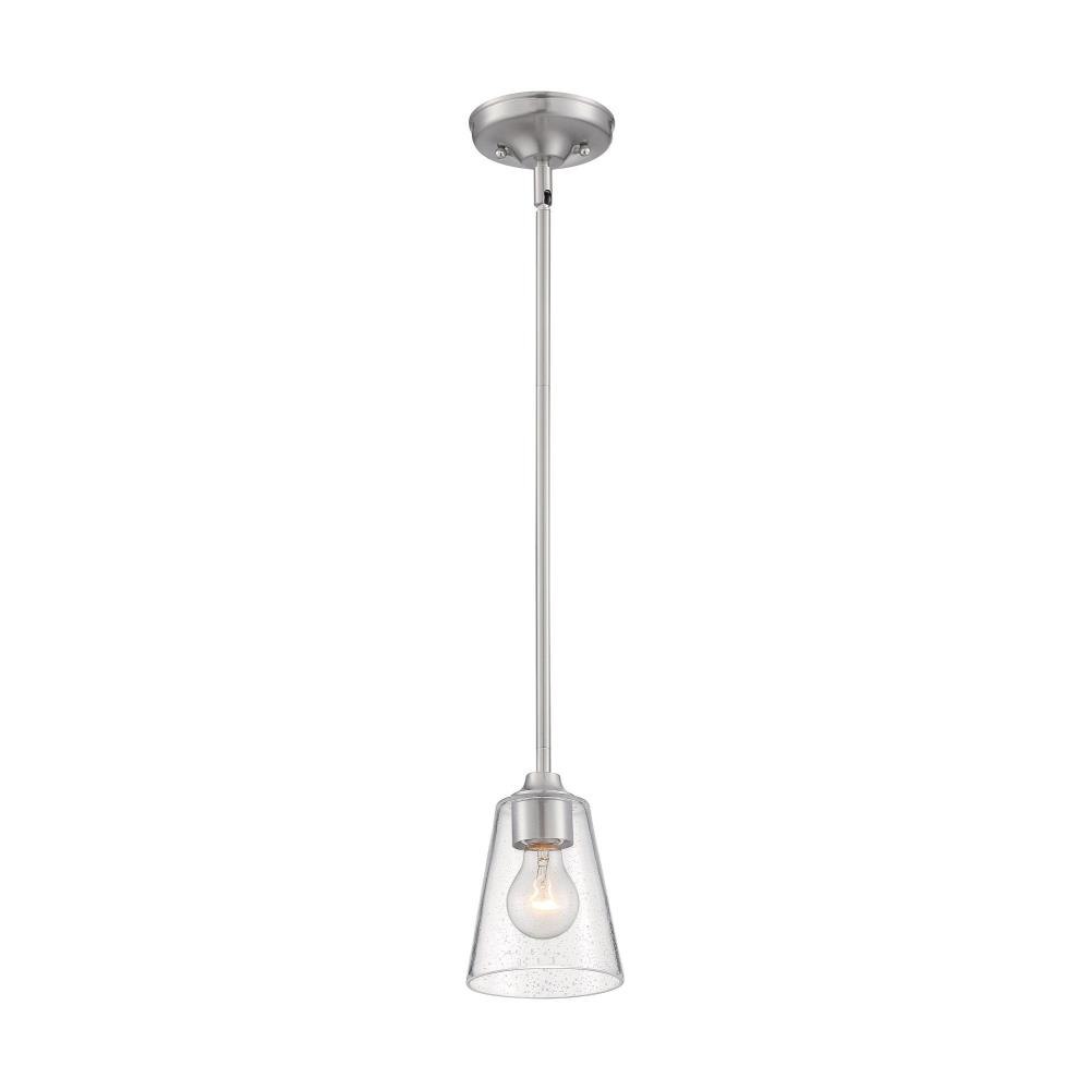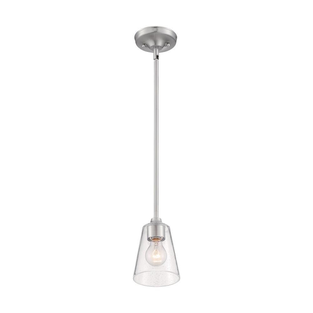 Bransel; 1 Light; Mini Pendant Fixture; Brushed Nickel Finish with Clear Seeded Glass