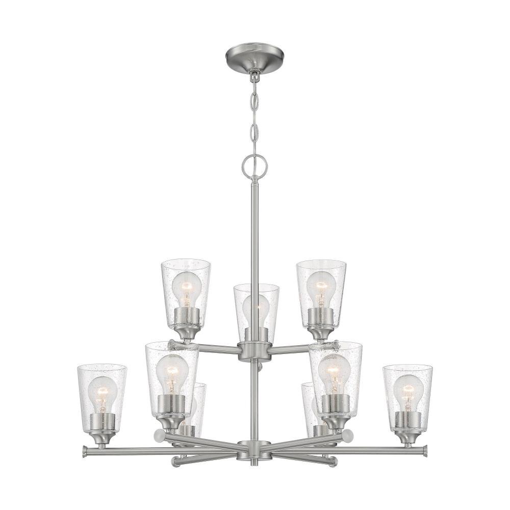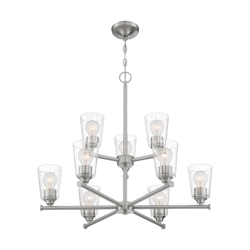 Bransel; 9 Light; Chandelier Fixture; Brushed Nickel Finish with Clear Seeded Glass
