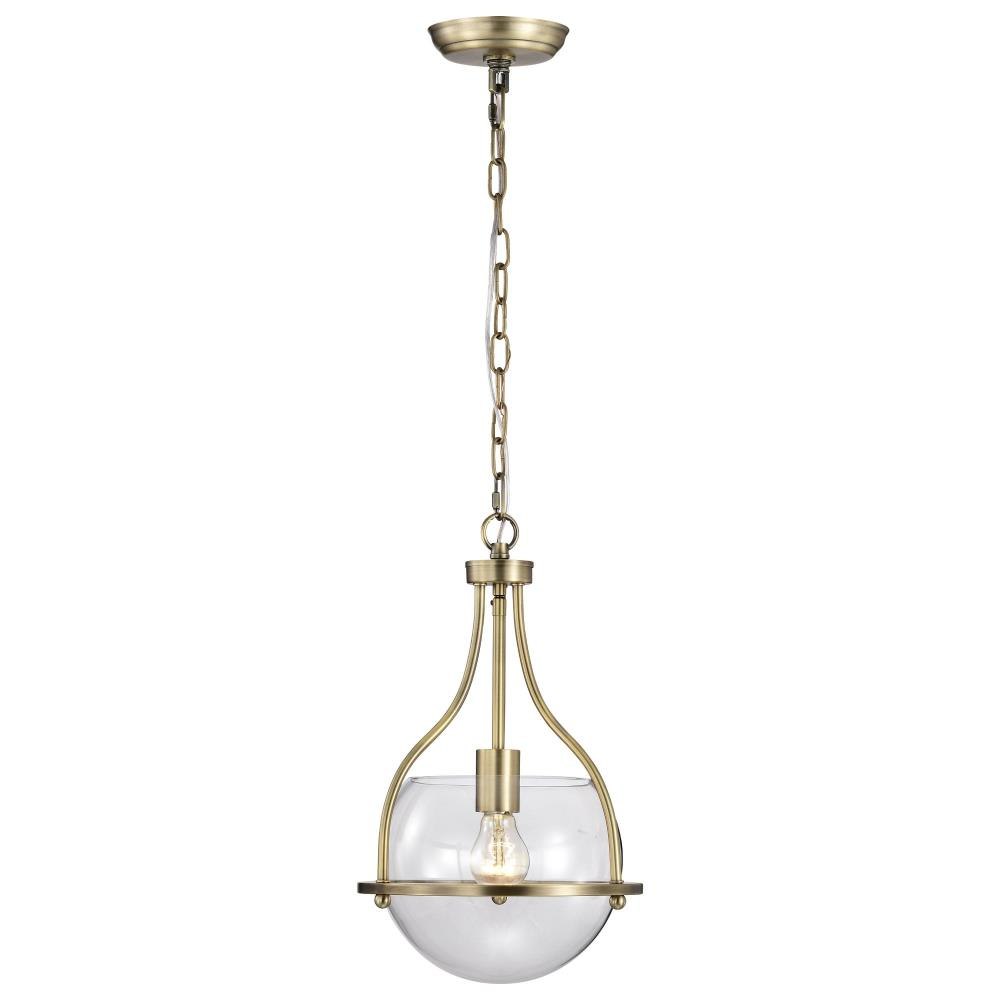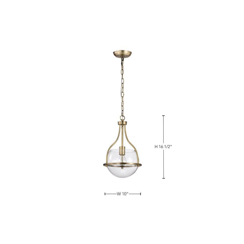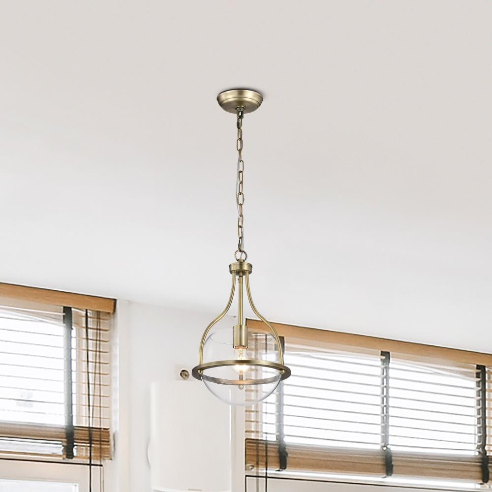 Elegant, transitional allure completes the Amado 60-7815 small pendant with it's unassuming style. The glow of vintage brass creates a warm ambiance and the clear glass bowl delicately showcases the light and is encompassed in graceful lines to exude classic charm. Create a serene sanctuary in your bedroom or a captivating centerpiece in your dining room, experience illumination that redefines transitional design for today's home.