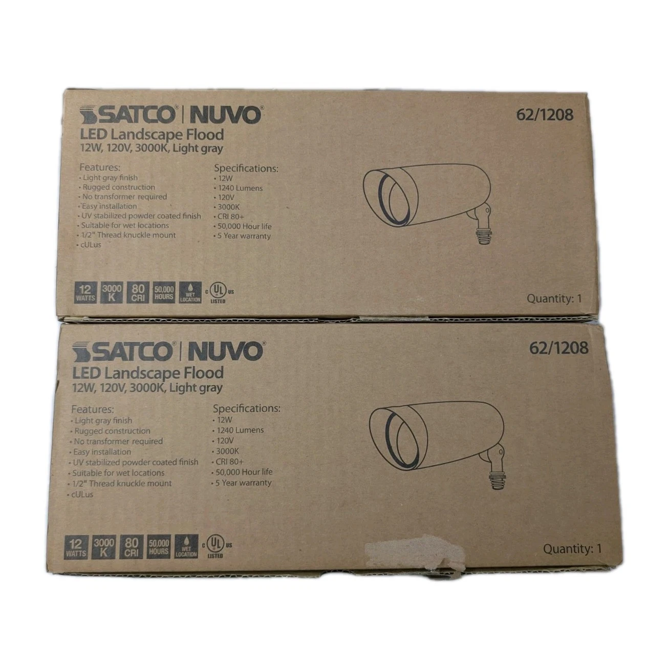 (Pair) Satco Nuvo LED Landscape Flood 12W, 3000K, Light Gray - 62-1208 12.2"