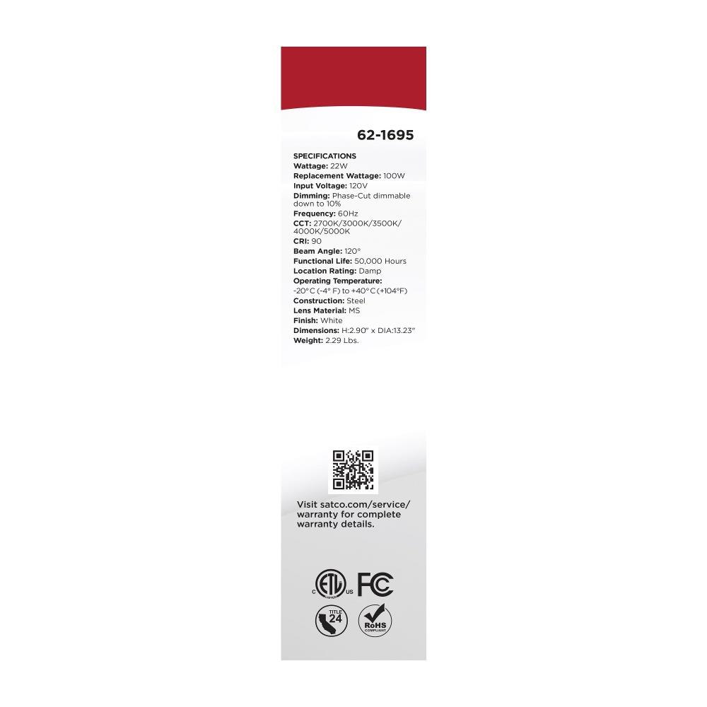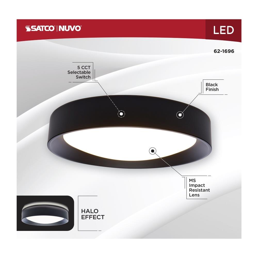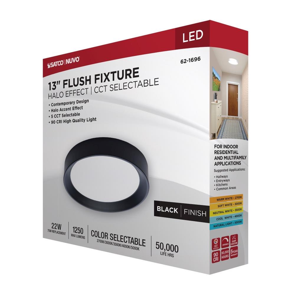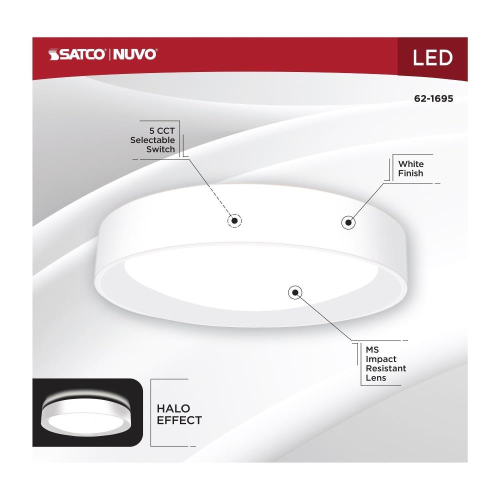 SATCO|NUVO's 62-1695 Selene LED Flush Mount Fixture will brighten your surroundings and elevate the overall atmosphere of your space. This fixture has a 13-inch diameter and is offered in a beautiful white finish. Experience the clarity of 90 CRI lighting from this timeless fixture, accompanied by the subtle and soft glow of the built-in halo accent feature. Offering selectable CCT options, dimming capabilities, and a damp location rating, this fixture effortlessly combines style and functionality in a sleek design.