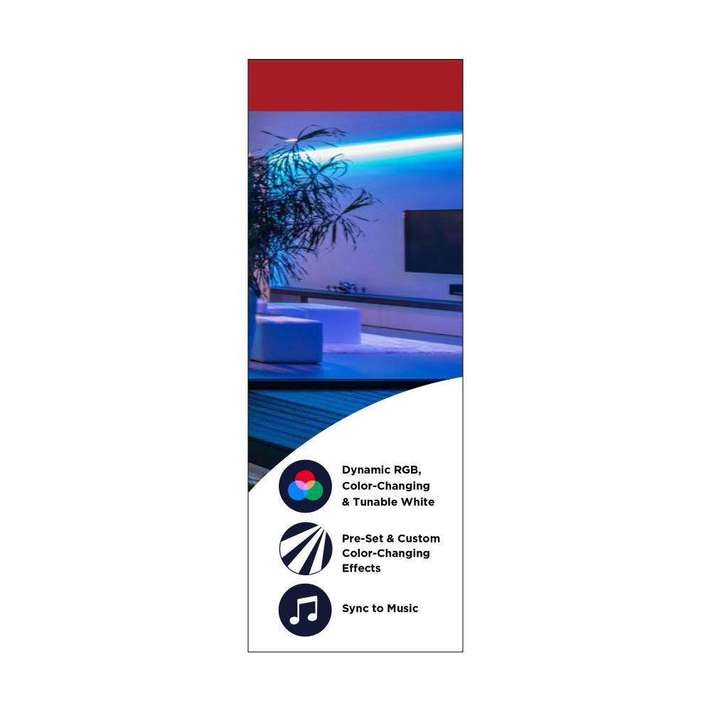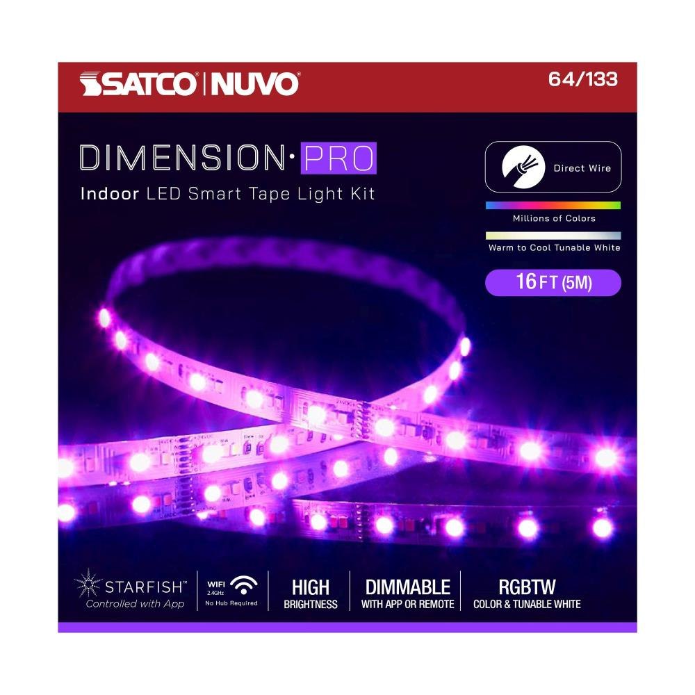 Immerse yourself in a world of limitless possibilities with DIMENSION Pro 64-133, the smart app-controlled 16-ft direct-wire tape light that will redefine your lighting experience. Sync the lighting to your favorite soundtrack, create the perfect ambiance with millions of colors to choose from, all with the STARFISH app, remote access lighting at your fingertips. Works with Google Home, Alexa, add to Siri and SmartThings, voice control perfect for today's smart home, transforming your living space or elevating your gaming experience. Featuring a wireless IR remote, warm to cool tunable white, and the ability to cut-to-size for precise installation, pre-set and color-changing effects. Add a channel with diffuser for a professional, stylized look, or create one long run of tape lights with the wire-to-tape connectors, there are endless possible configurations to create a colorful and exciting atmosphere bringing joy to any commercial or residential space.