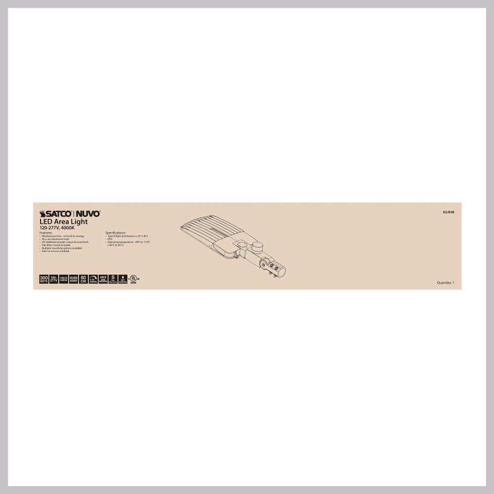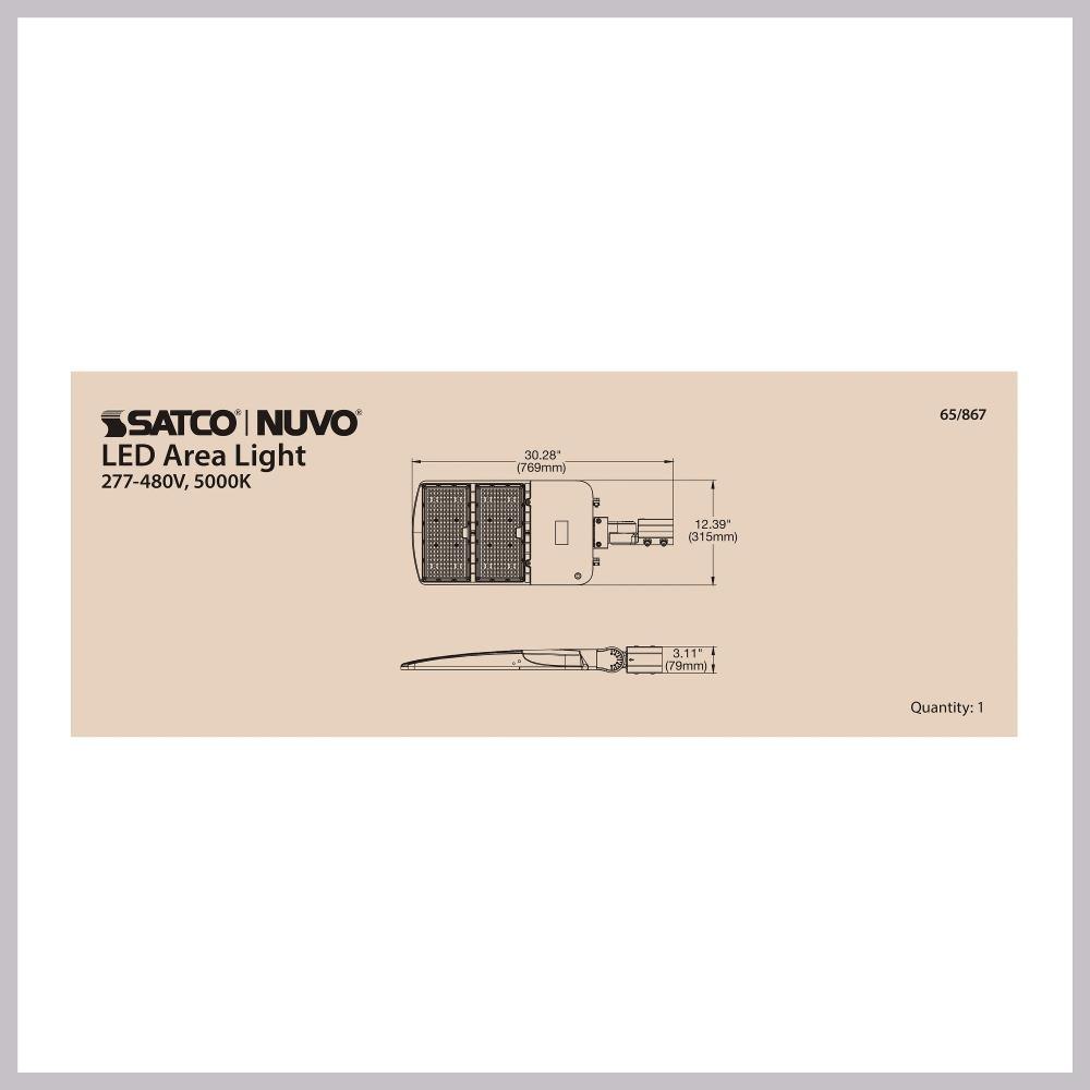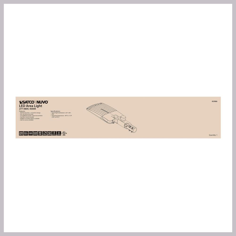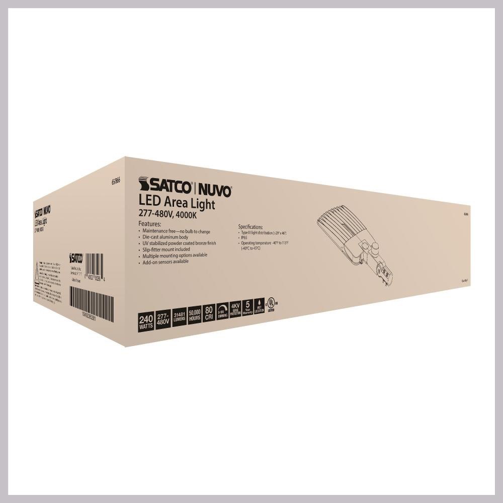 The SATCO 65-846 240W LED Area Light Type III provides cool white light, engineered for the highest performance in multiple applications. The lamp's high lumen count provides superior illumination. SATCO's LED Area Lights, built using die cast aluminum and impact resistant lenses and featuring an IP65 rating, provide ample lighting for both indoor and outdoor events. The lamps offer 50,000 hours of life and built in 4KV surge protection.Maintenance free - no bulb to changeDie-cast aluminum bodyUV Stabilized powder coasted bronze finishSlip-fitter mount includedIP65 RatedMultiple mounting options availableAdd-on sensors availableDLC ListedAll Weather Durability.