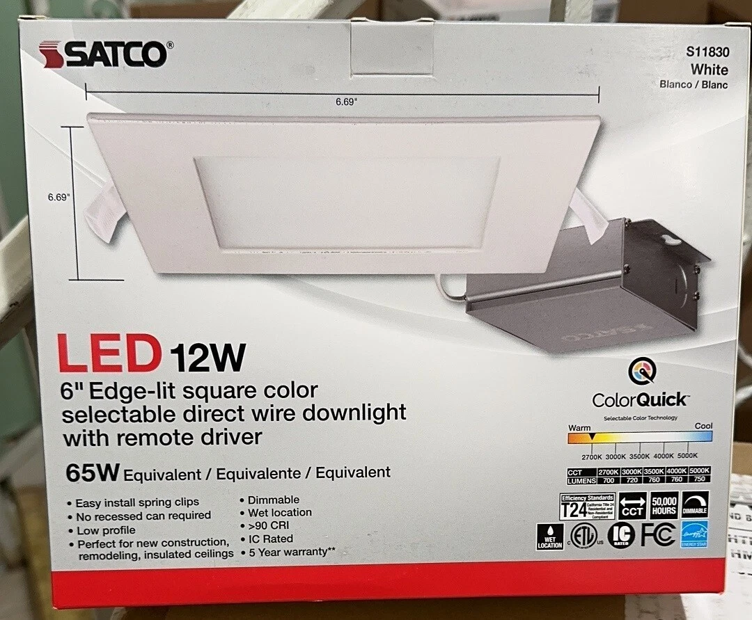 NEW 1-pc Satco 6" Edge-lit Square LED Down Light 12W Color Selectable S11830