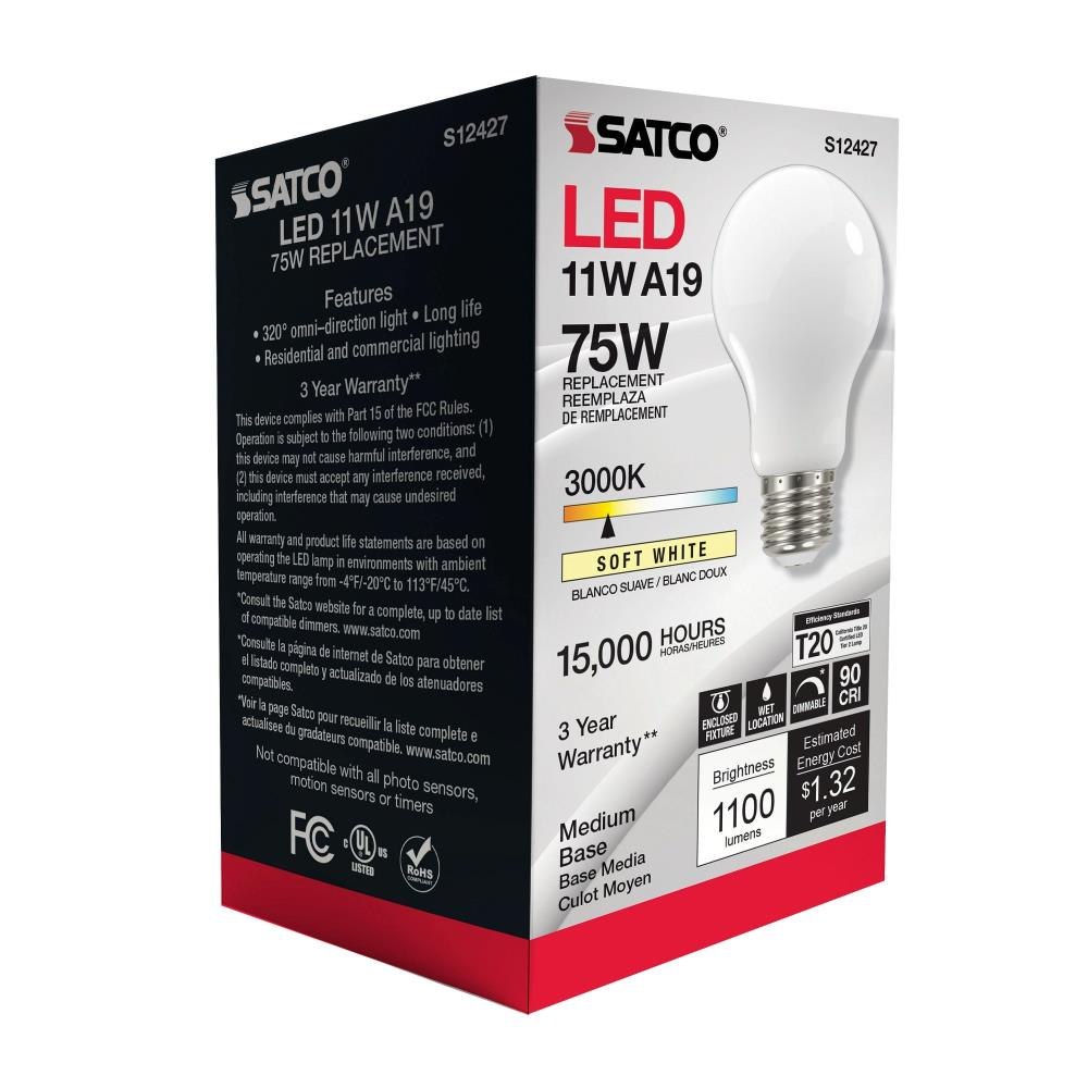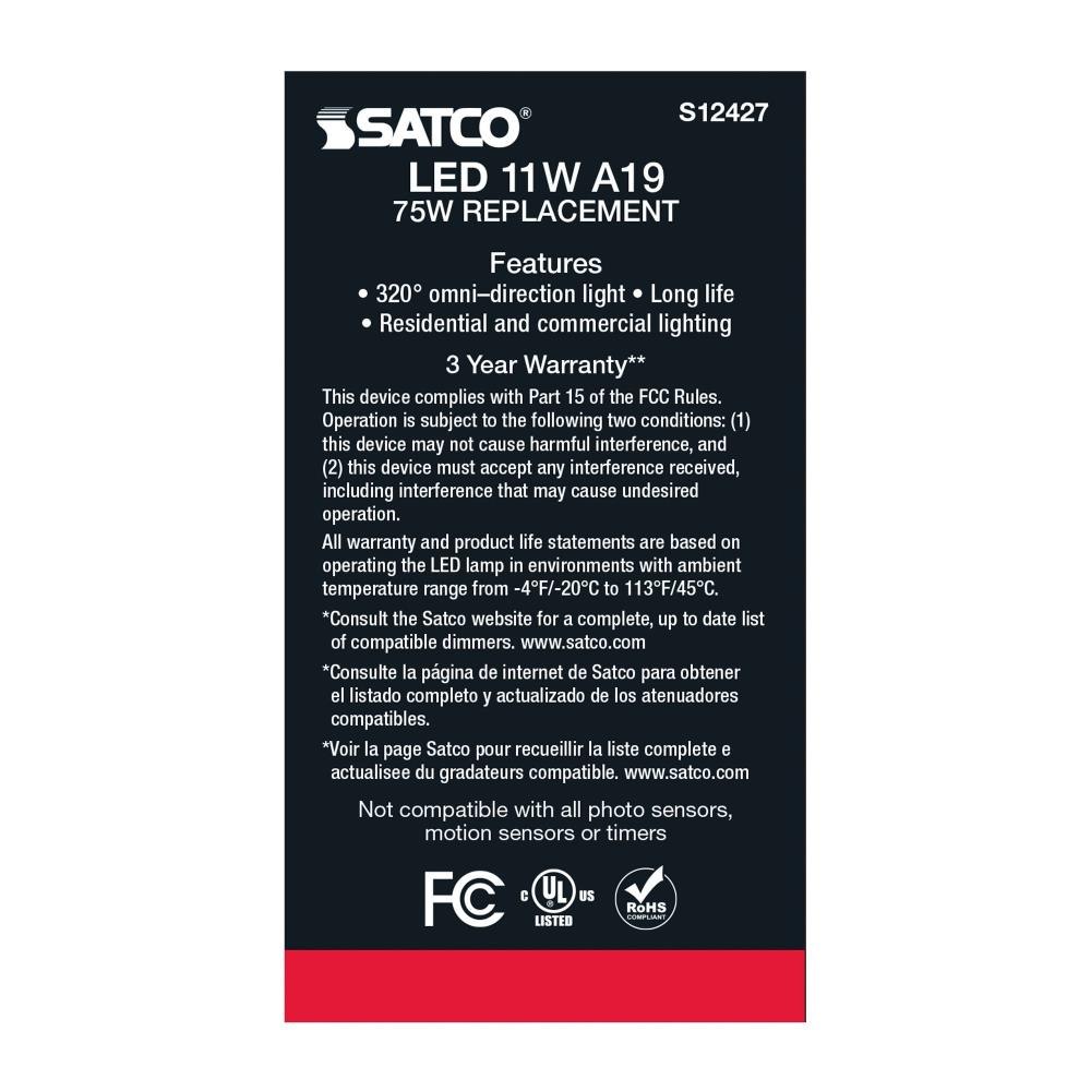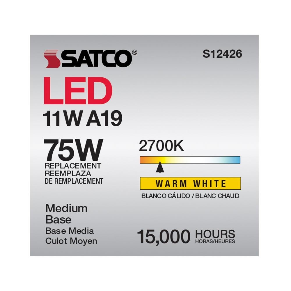 Satco - S12426 - 4.02 Inch 11W A19 LED Medium Base Replacement Lamp
