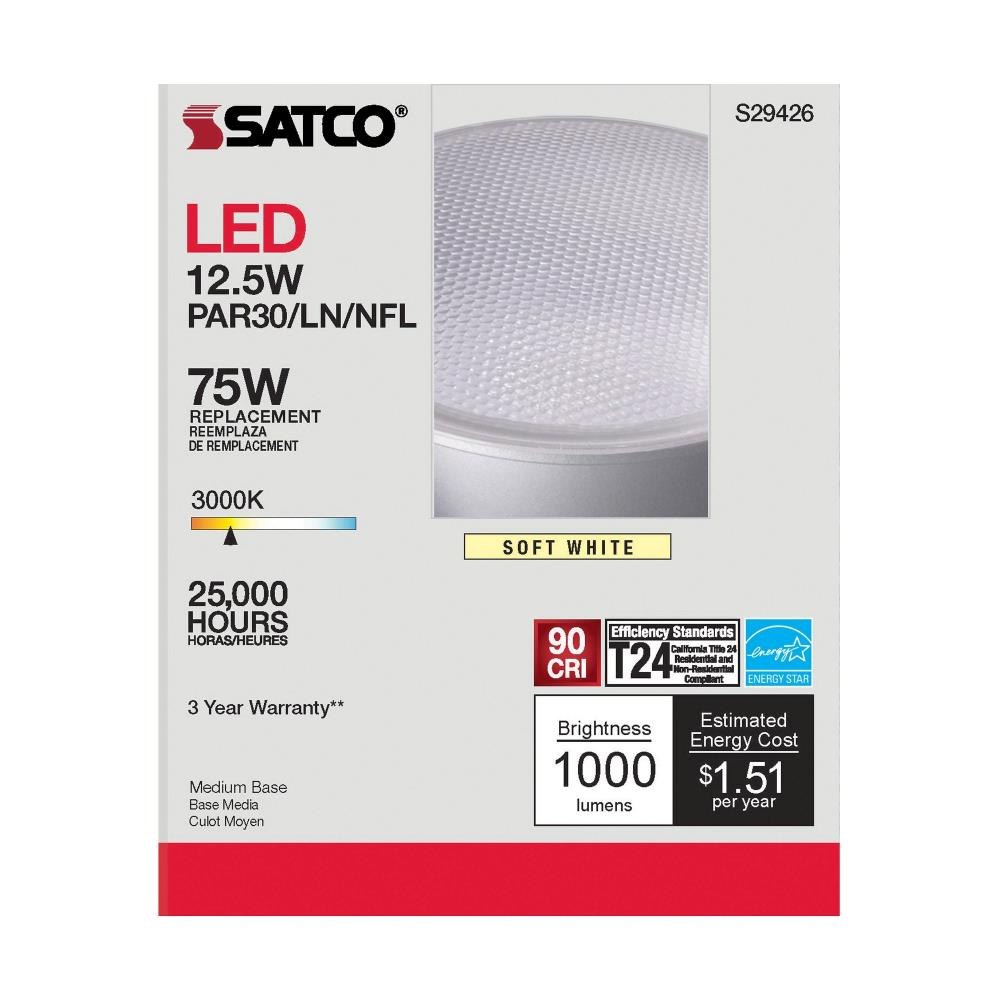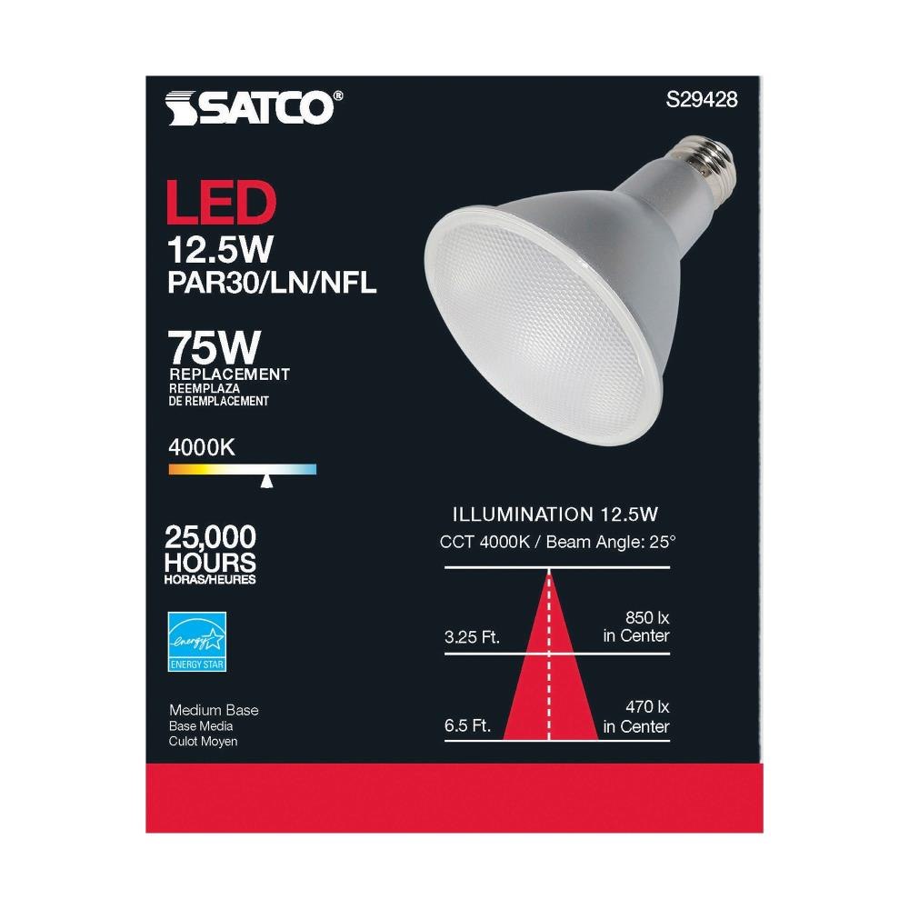 Satco - S29428 - 4.57 Inch 12.5W PAR30LN LED Medium Base Replacement Lamp