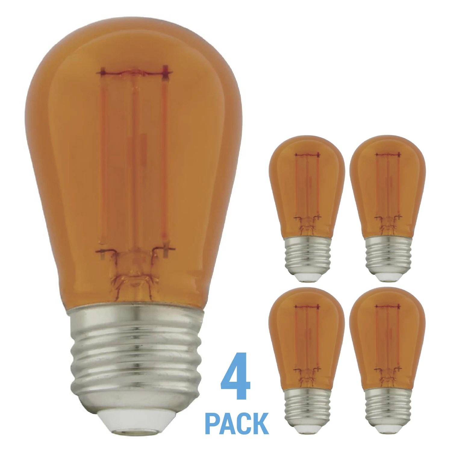 4 Pack Satco S8026 LED Filament 120V 1W =11W S14 Medium E26 Transparent Orange