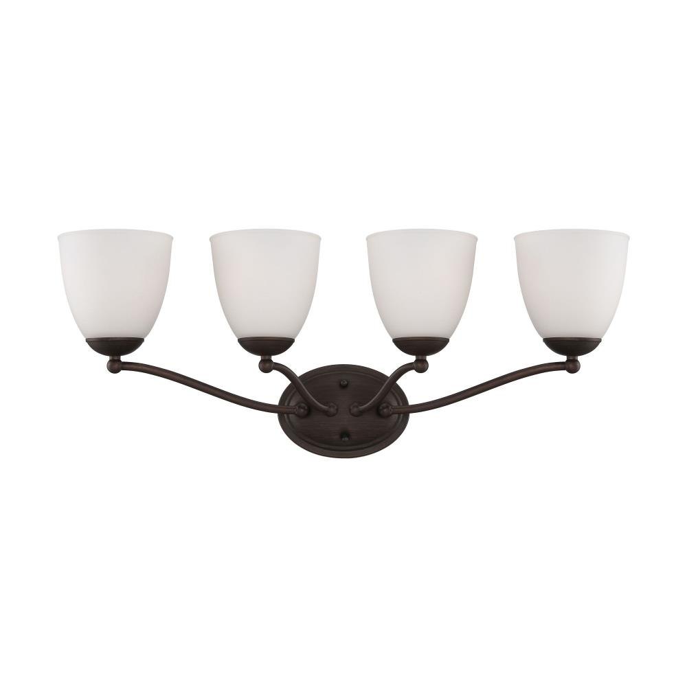 The classically inspired Patton series finished in brushed nickel or prairie bronze and accented by frosted glass shades, is the largest and most versatile of our new design collections. In addition to the usual configurations, Patton features a 4-light vanity, a flush dome and 3 and 5-light chandeliers which are available in both arm-up and arm-down configurations. There is nowhere these fixtures cannot go. Rated: Damp.