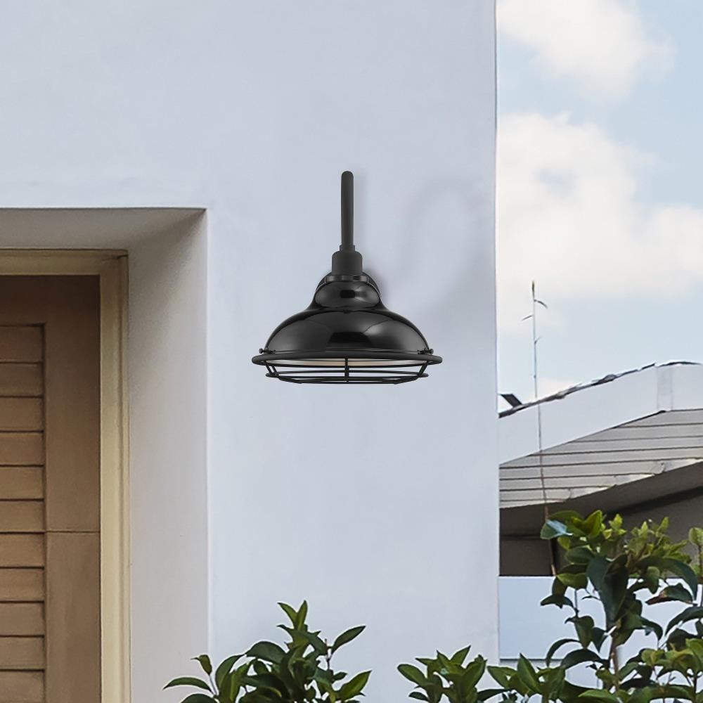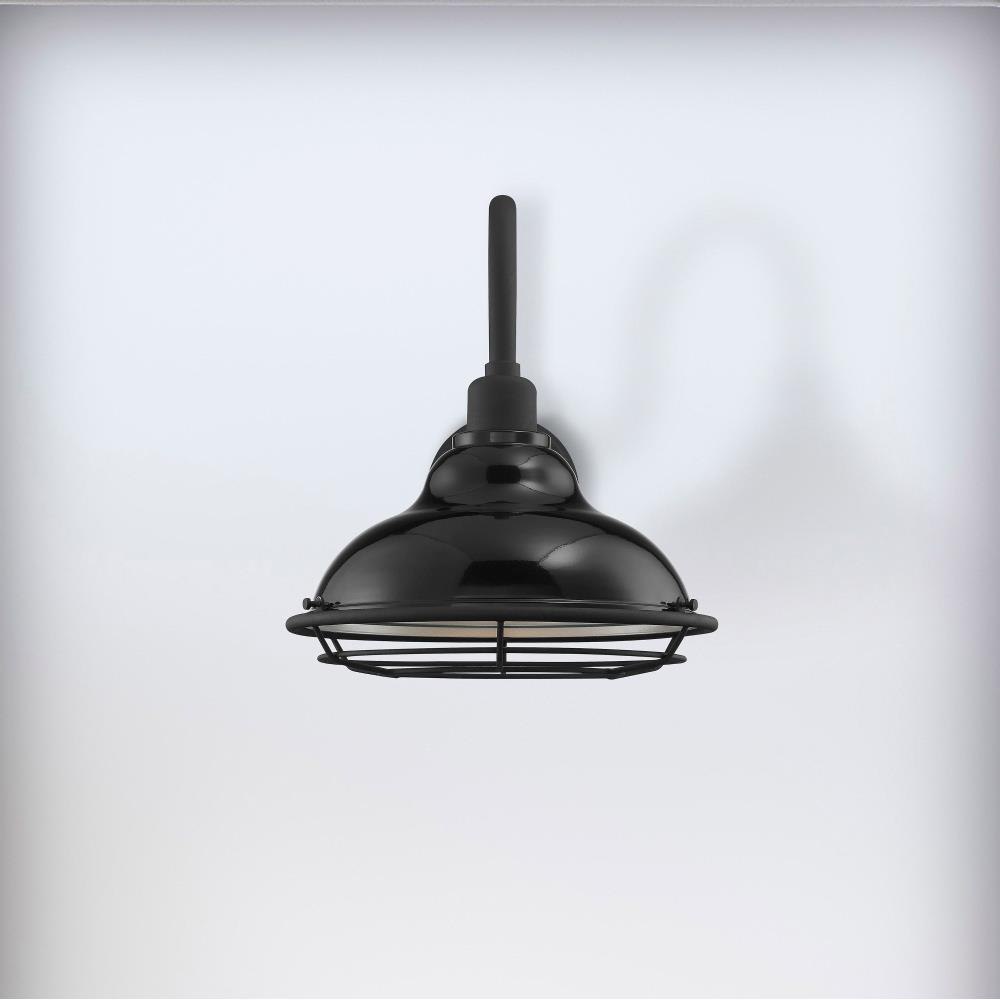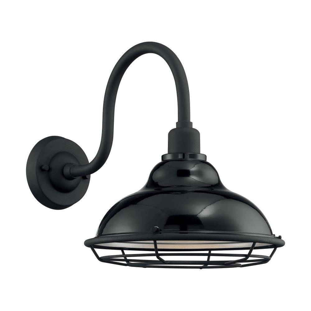 Newbridge; 1 Light; Large Outdoor Wall Sconce Fixture; Gloss Black Finish with Silver and Textured Black Accents