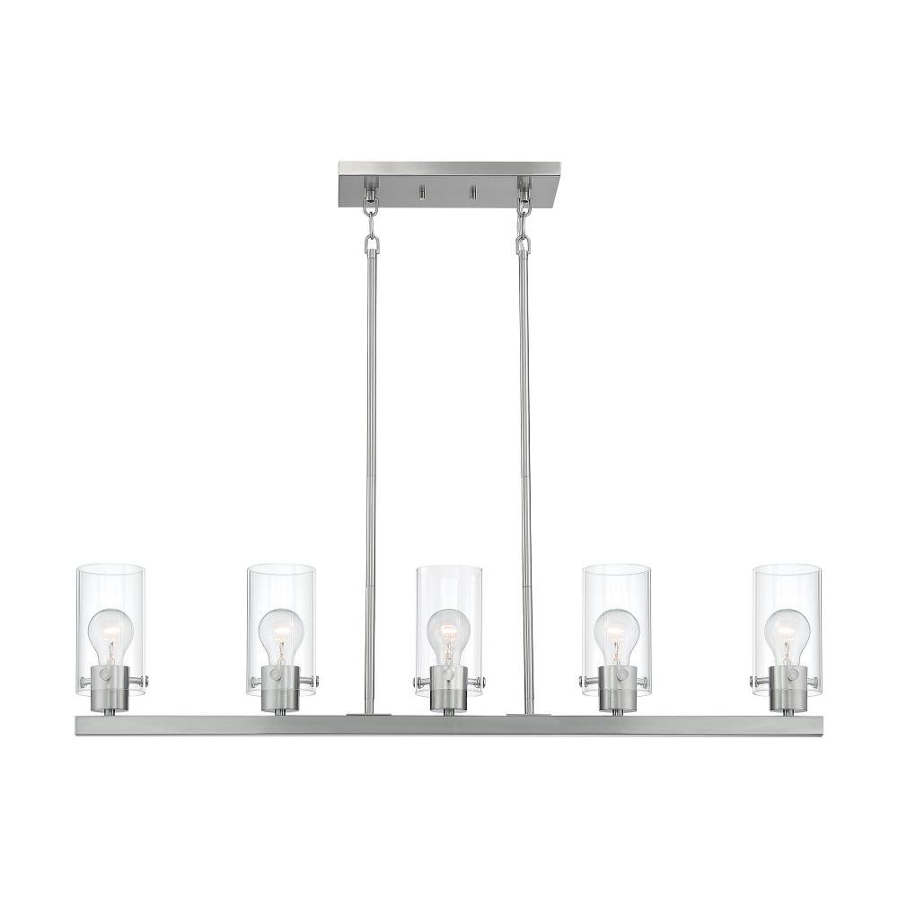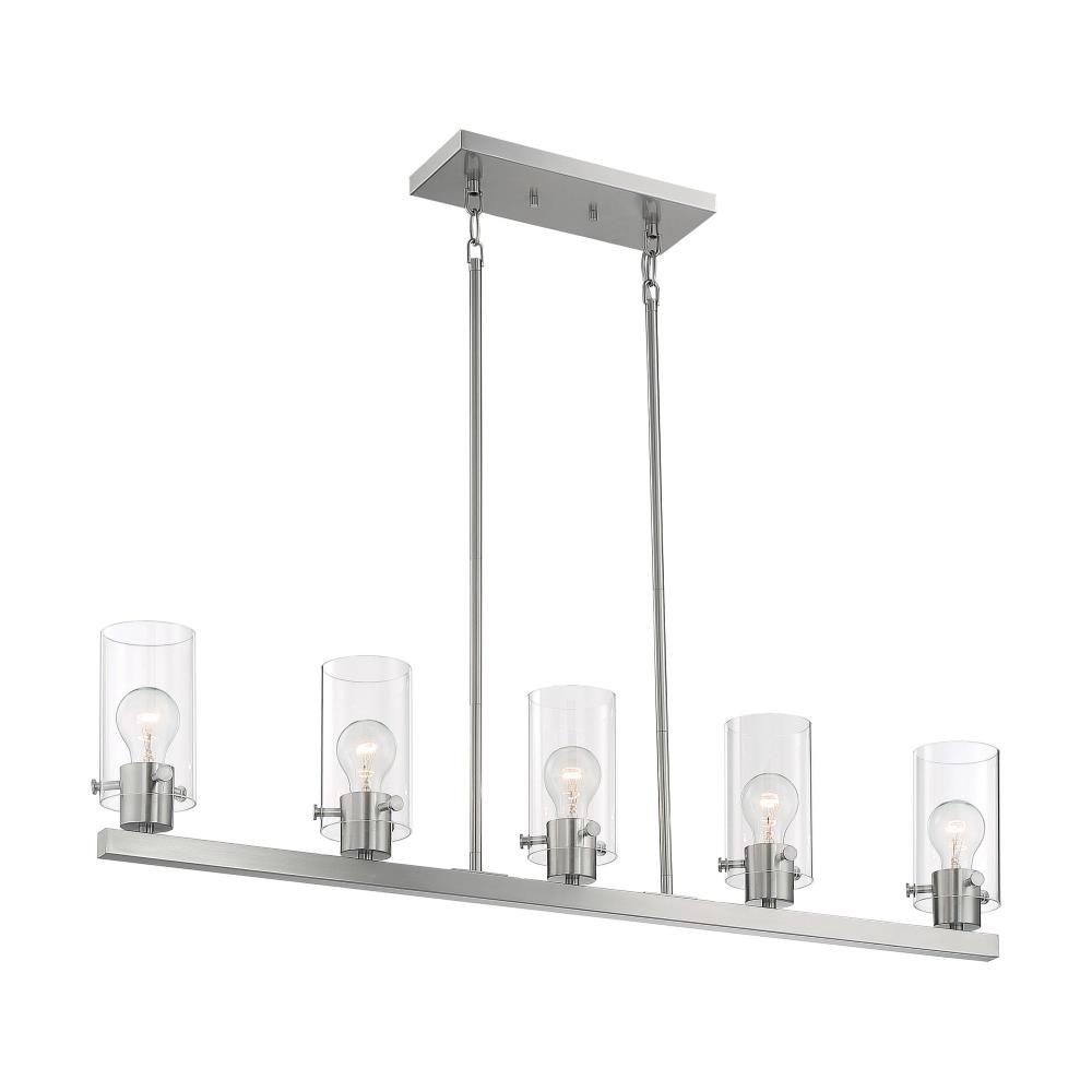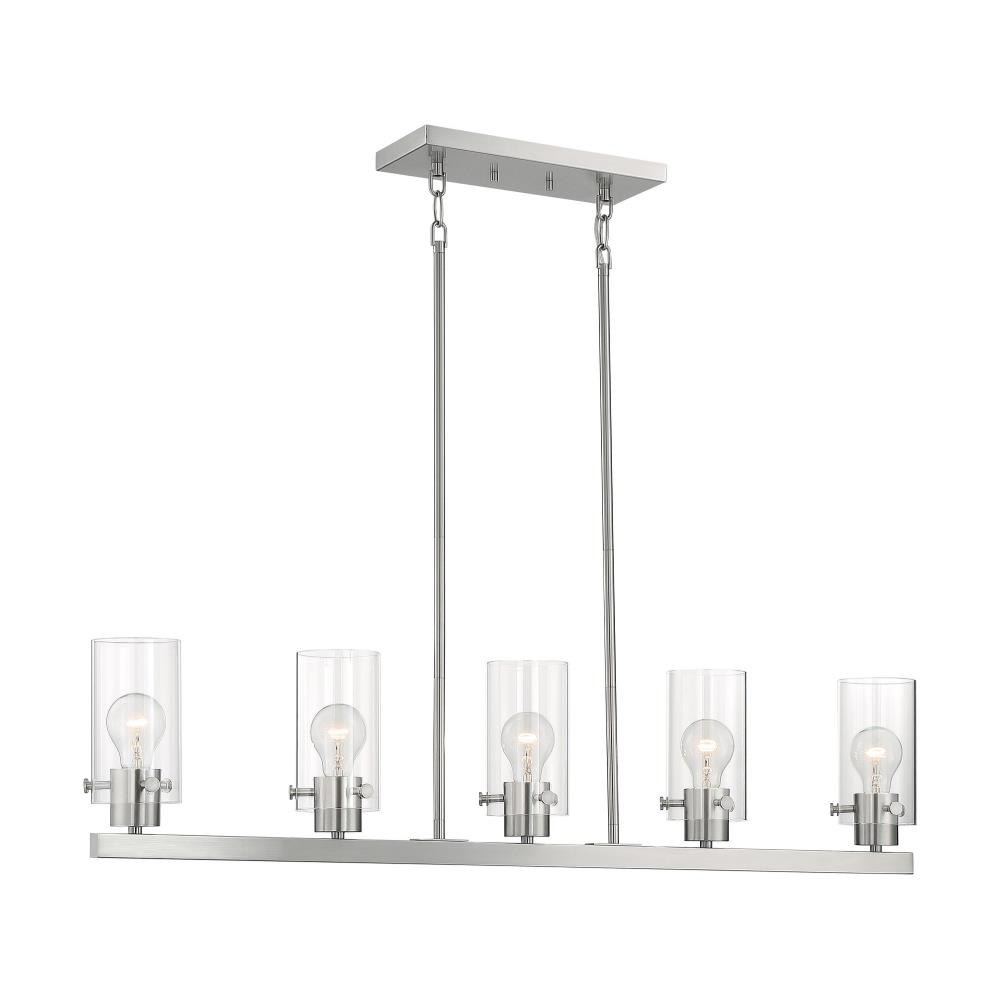 Sommerset; 5 Light; Island Pendant Fixture; Brushed Nickel Finish with Clear Glass