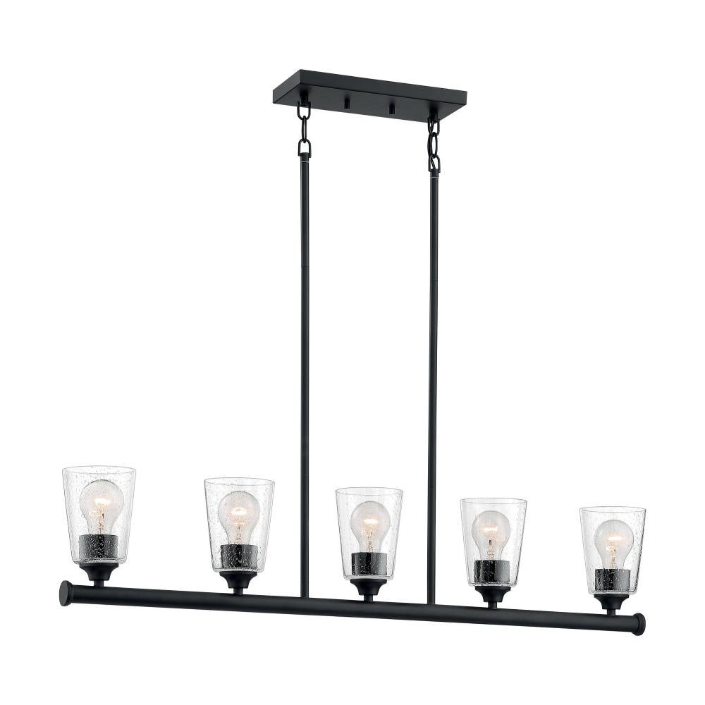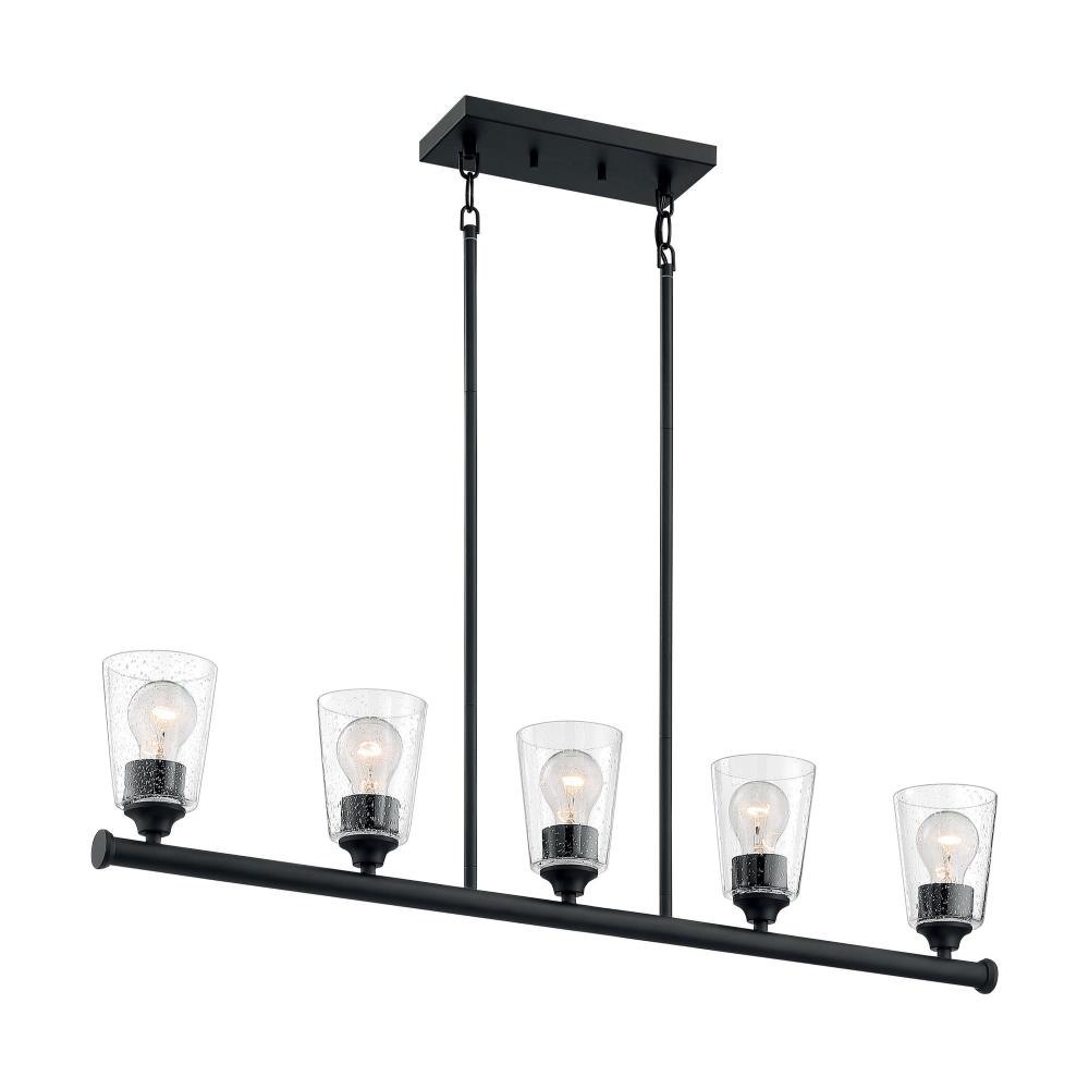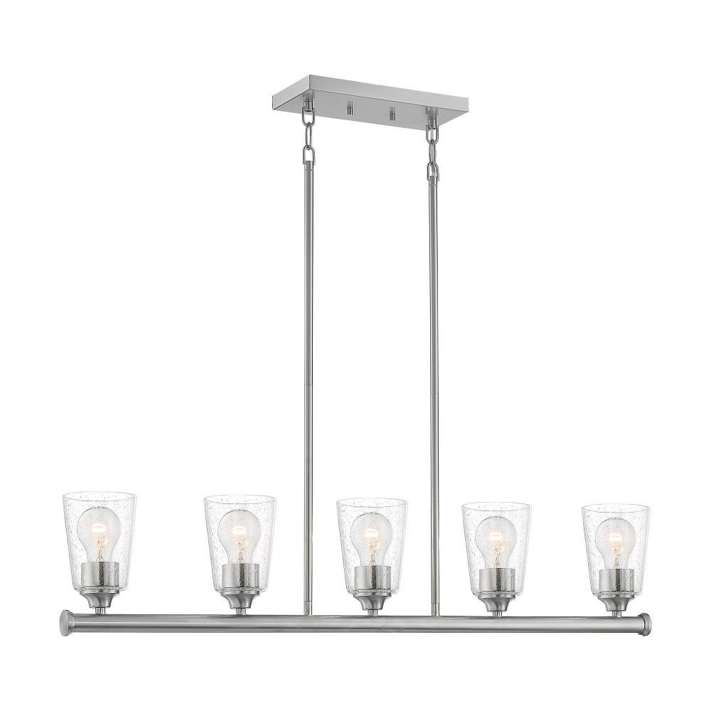 Bransel; 5 Light; Island Pendant Fixture; Brushed Nickel Finish with Clear Seeded Glass