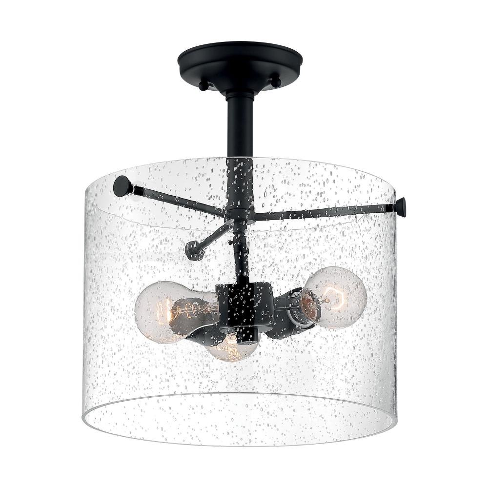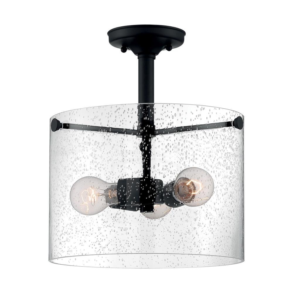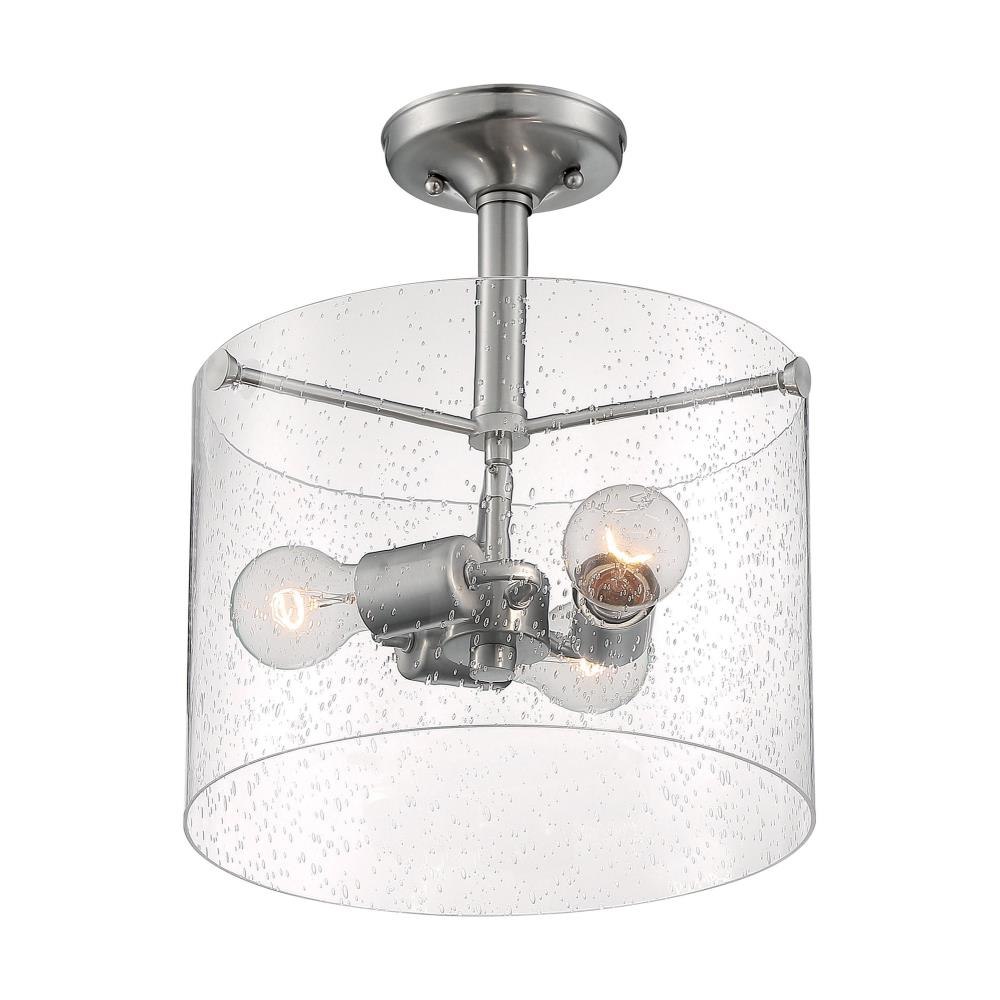 Bransel; 3 Light; Semi-Flush Fixture; Brushed Nickel Finish with Clear Seeded Glass