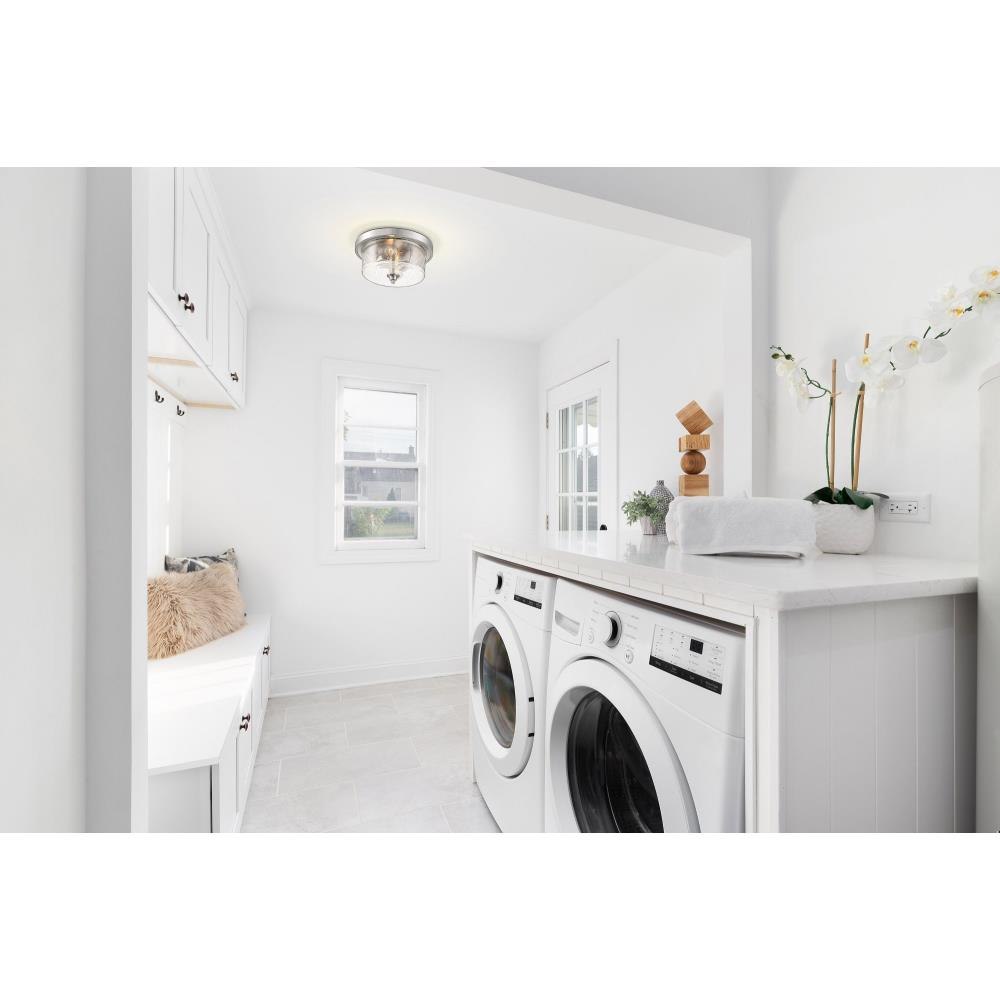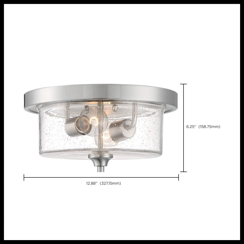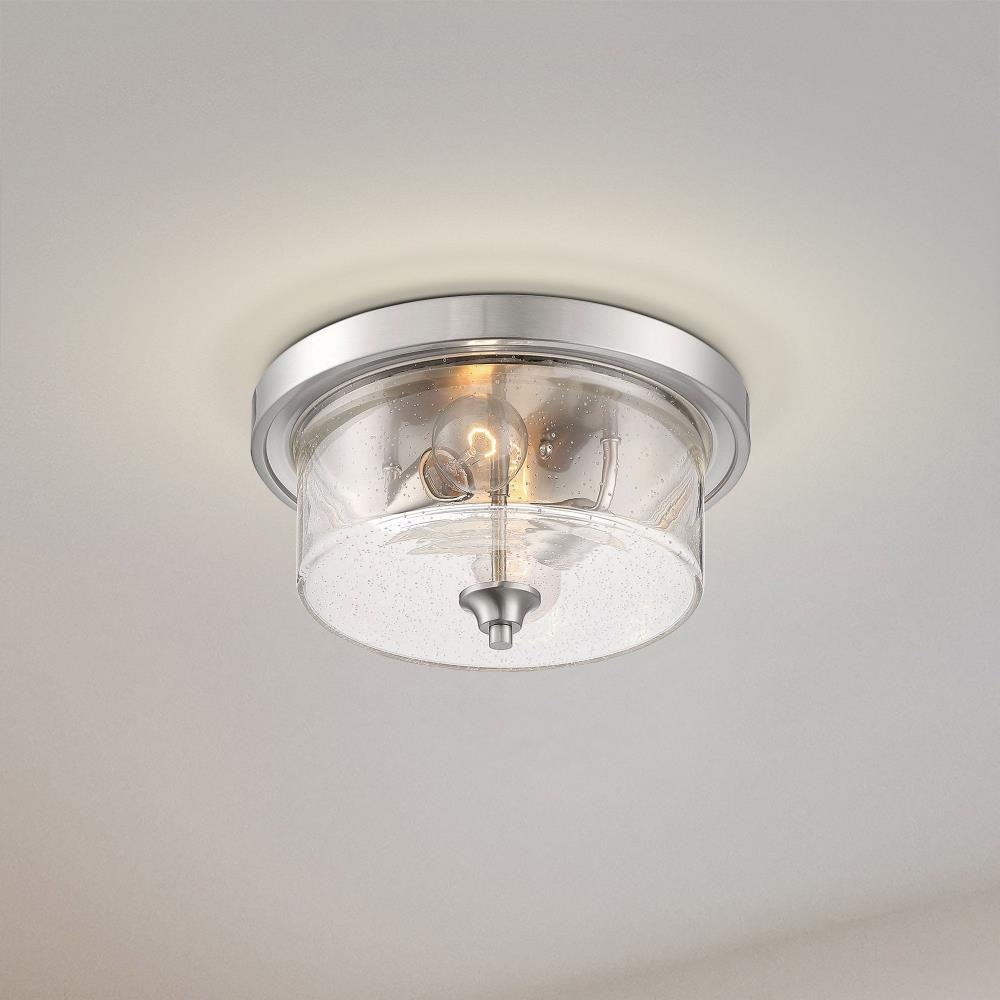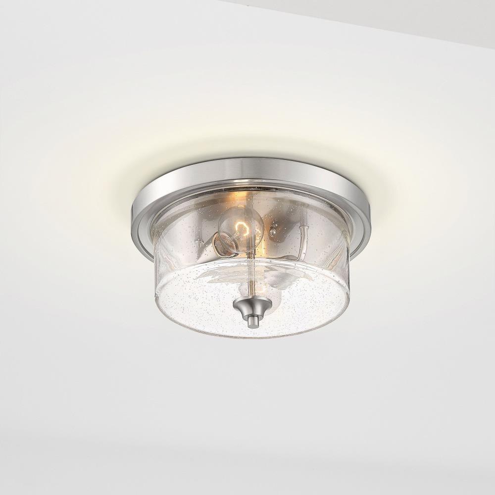 Bransel; 2 Light; Flush Mount Fixture; Brushed Nickel Finish with Clear Seeded Glass
