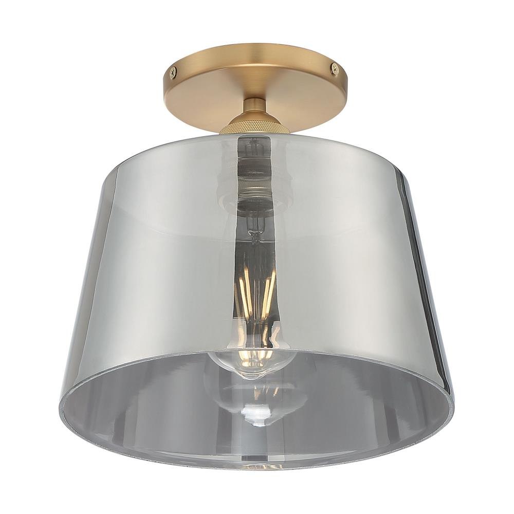 Motif; 1 Light; 10 in.; Semi-Flush Brushed Brass with Smoked Glass