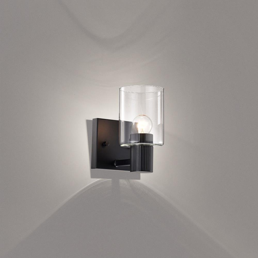 Simplicity takes center stage as the Clarksville 60-8061 one-light vanity celebrates the beauty found in uncomplicated design. The matte black finish adds a touch of sophistication, and when paired with clear glass embraces a minimalist aesthetic, allowing the pure essence of light to shine through. Modernity is seamlessly woven into the fixture, offering clean lines and a slim silhouette that harmonizes with any setting, a testament to the enduring beauty found in simplicity and classic charm.