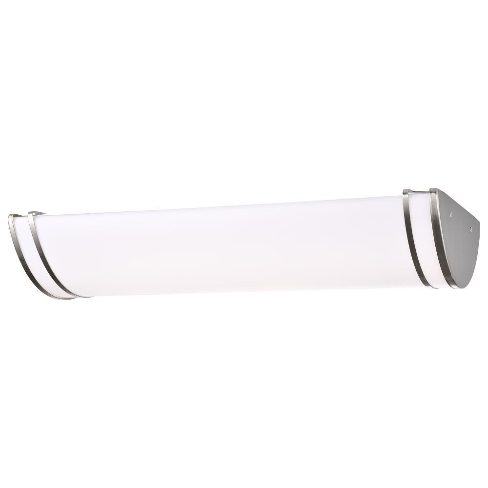The 62-1639 Glamour LED linear flush mount fixture by Satco has been updated with ColorQuick technology. The simple, integrated switch allows for easy CCT selection of 3000K, 4000K or 5000K. Applications include bathrooms, hallways or offices.ColorQuick - Integrated switch allows for 3000K, 4000K and 5000K CCT SelectionsBrushed Nickel Finish with Acrylic ShadeIntegrated LED IncludedROHS Compliant3-Year Limited WarrantyDimmable.
