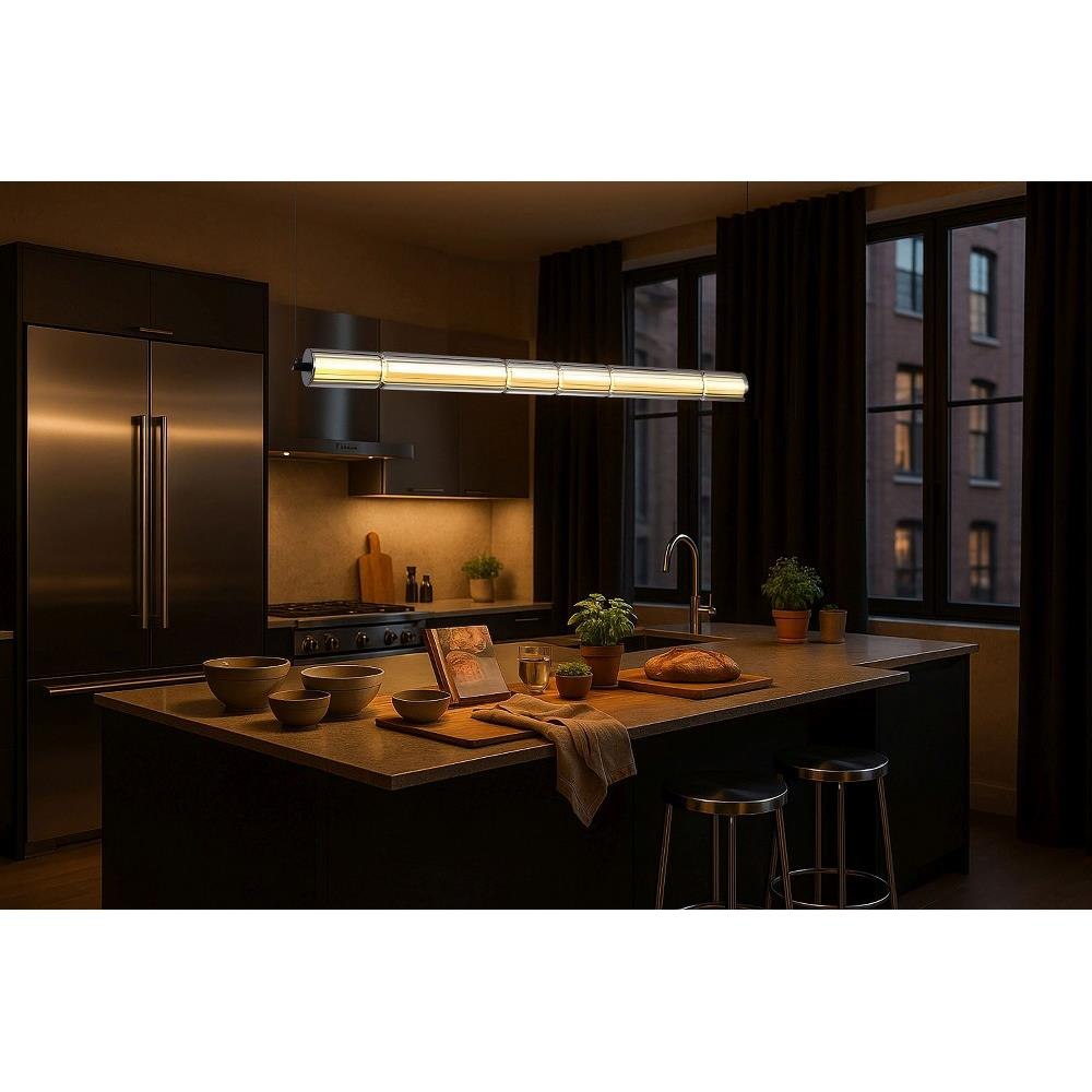 Discover the refined beauty of the Evander 62-2452 LED island light, where modern design meets minimalist elegance. With its clean lines and subtle detailing, it projects quiet sophistication, offering a perfect balance of form and function. Finished in matte black, it features a striking smoked mirror glass tube with a white interior that casts a soft, inviting glow. Ideal for those who appreciate understated luxury and creating an atmosphere of intimate allure and contemporary grace.