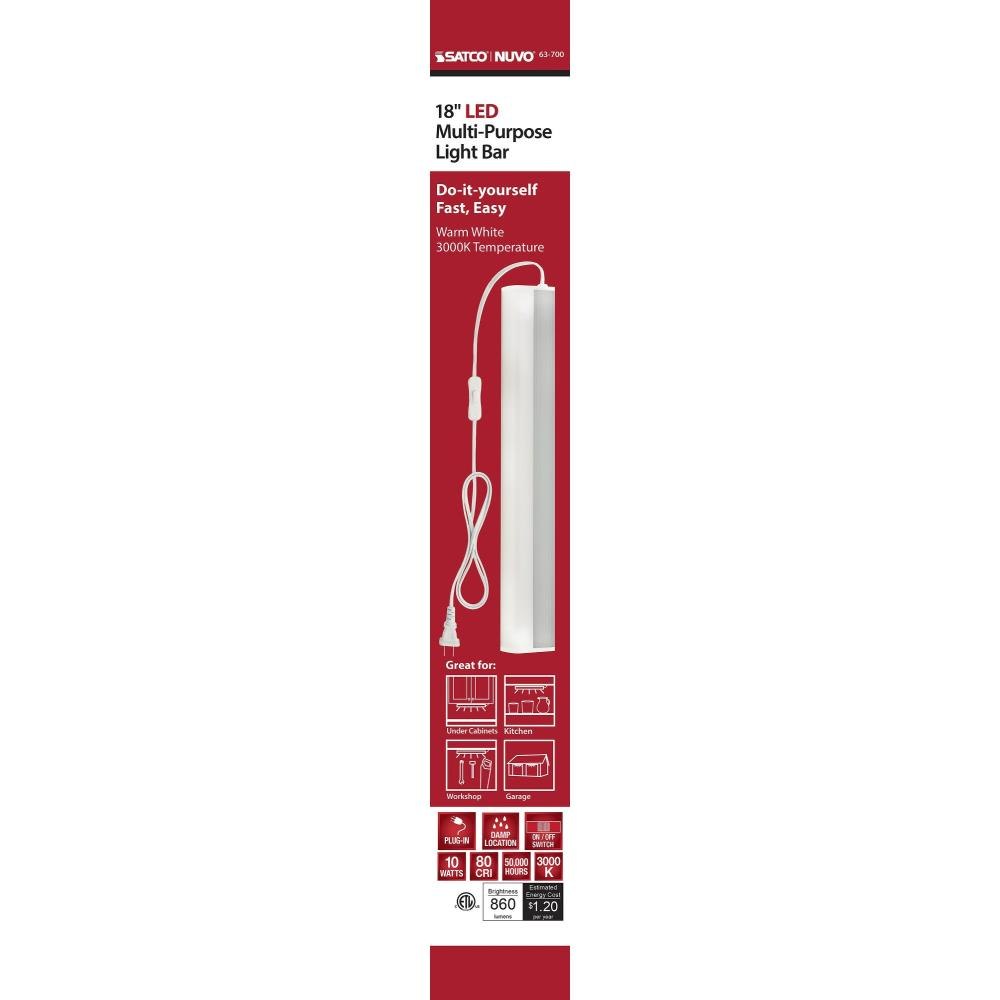 Our newest LED multi-purpose light bar offers ease of installation and our most advanced LED technologies to Cuntertops, shelves, work benches and any craft or workspace. Available in two lengths, make lighting larger areas easy, and all thats needed is an outlet. Installation is simple using keyhole mounting hardware or 3M tape, both supplied. This is a compact fixture that makes a big difference in any workspace-workshops, offices, studies, craft rooms, counter tops and more.Sleek Design - only 1 inch deepEasy InstallationSimple Plug-in OperationStandalone FixtureDamp Location.