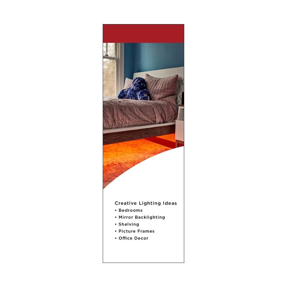 DIMENSION Color 64-100 tape light is the perfect way to add a vibrant splash of color, an easy and playful lighting solution designed with simplicity in mind. Our LED tape is ideal for kids and anyone looking to add easy and fun lighting bursting with vivid hues. Featuring a wireless IR remote with over 16 variations of color/effects options, Dynamic Color Changing, dimmable via remote, and the ability to cut-to-size for precise installation. Add a channel with diffuser for a professional, stylized look, sold separately. Allow DIMENSION Color tape lights to create a colorful and exciting atmosphere bringing joy to any space or venue.