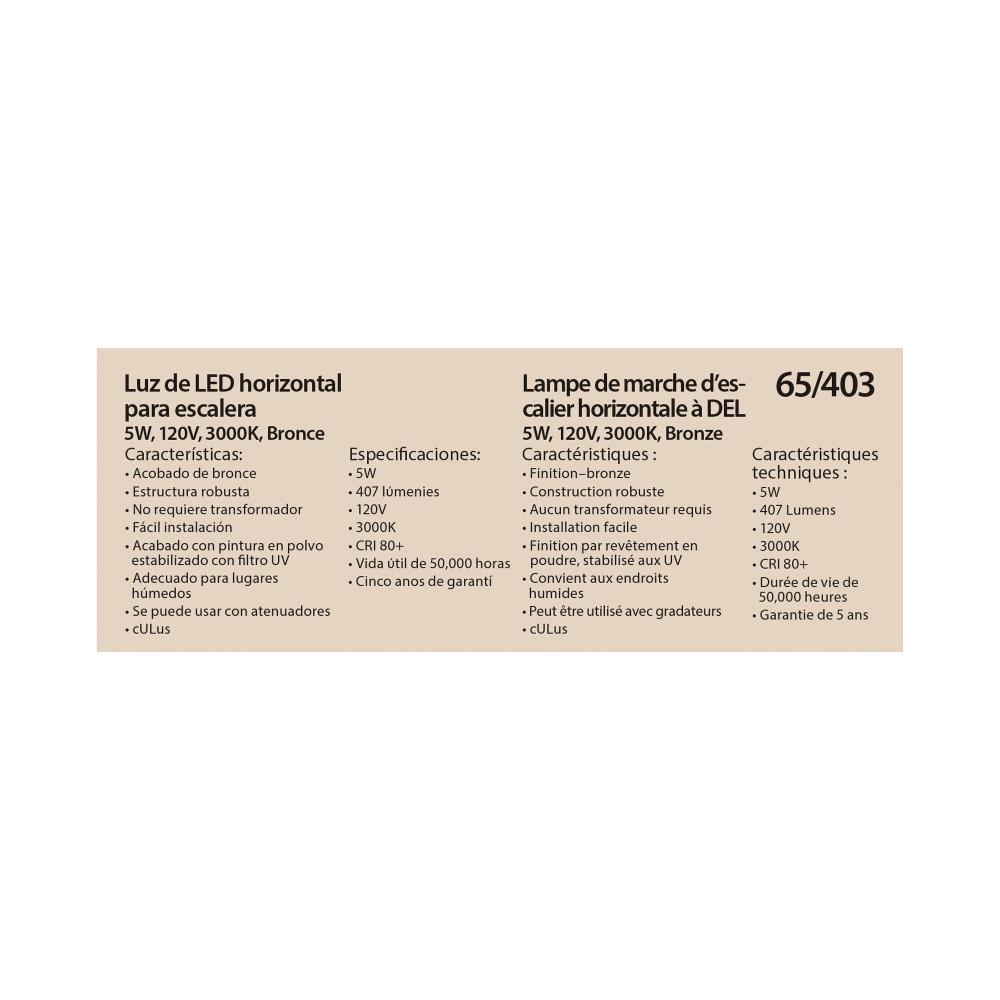 LED Horizontal Step Light; 5W; Bronze Finish; 120V