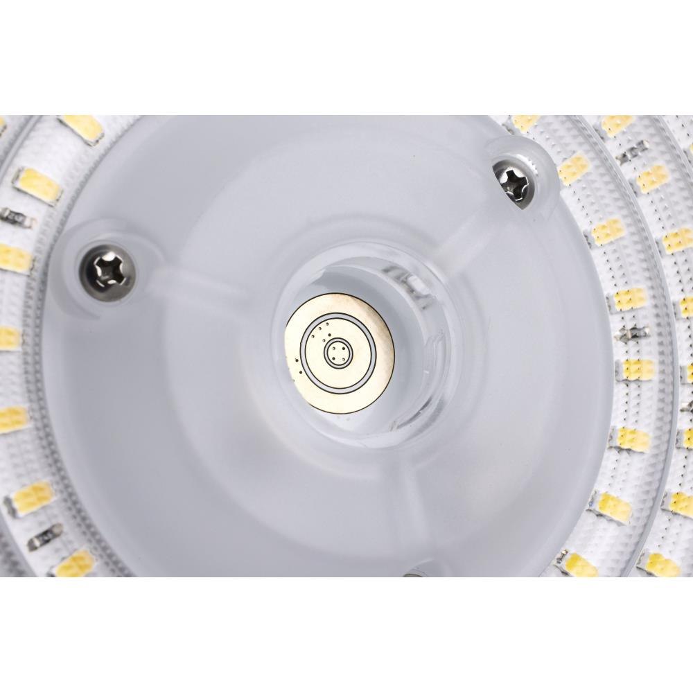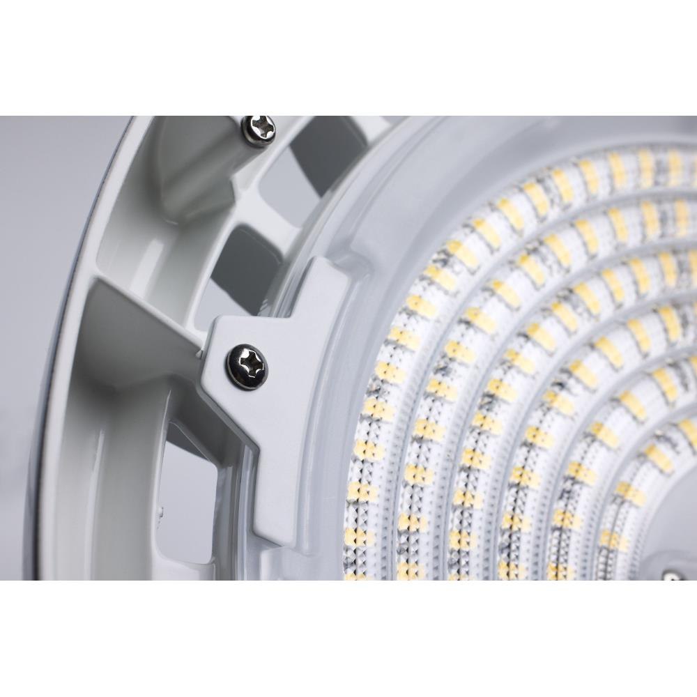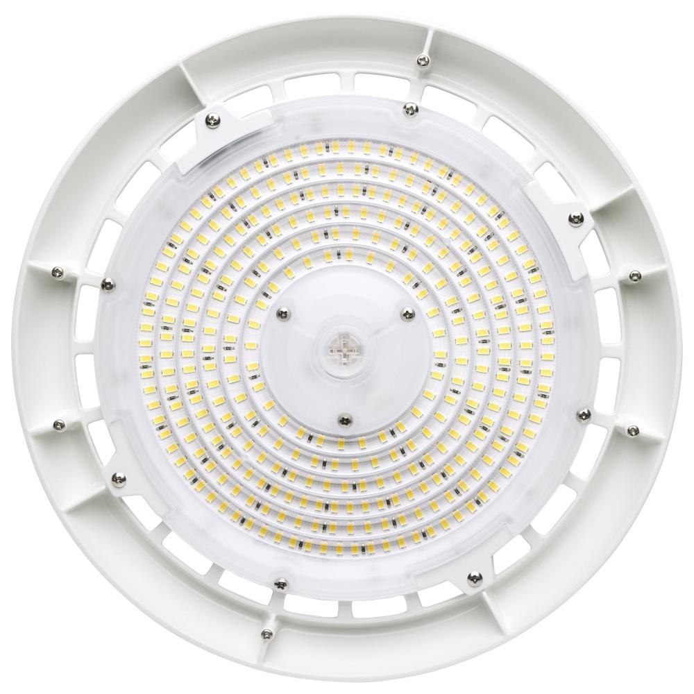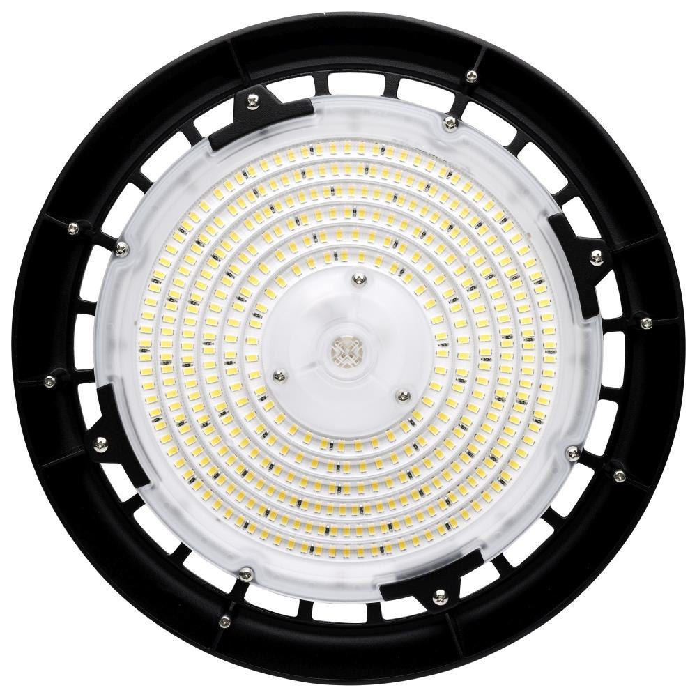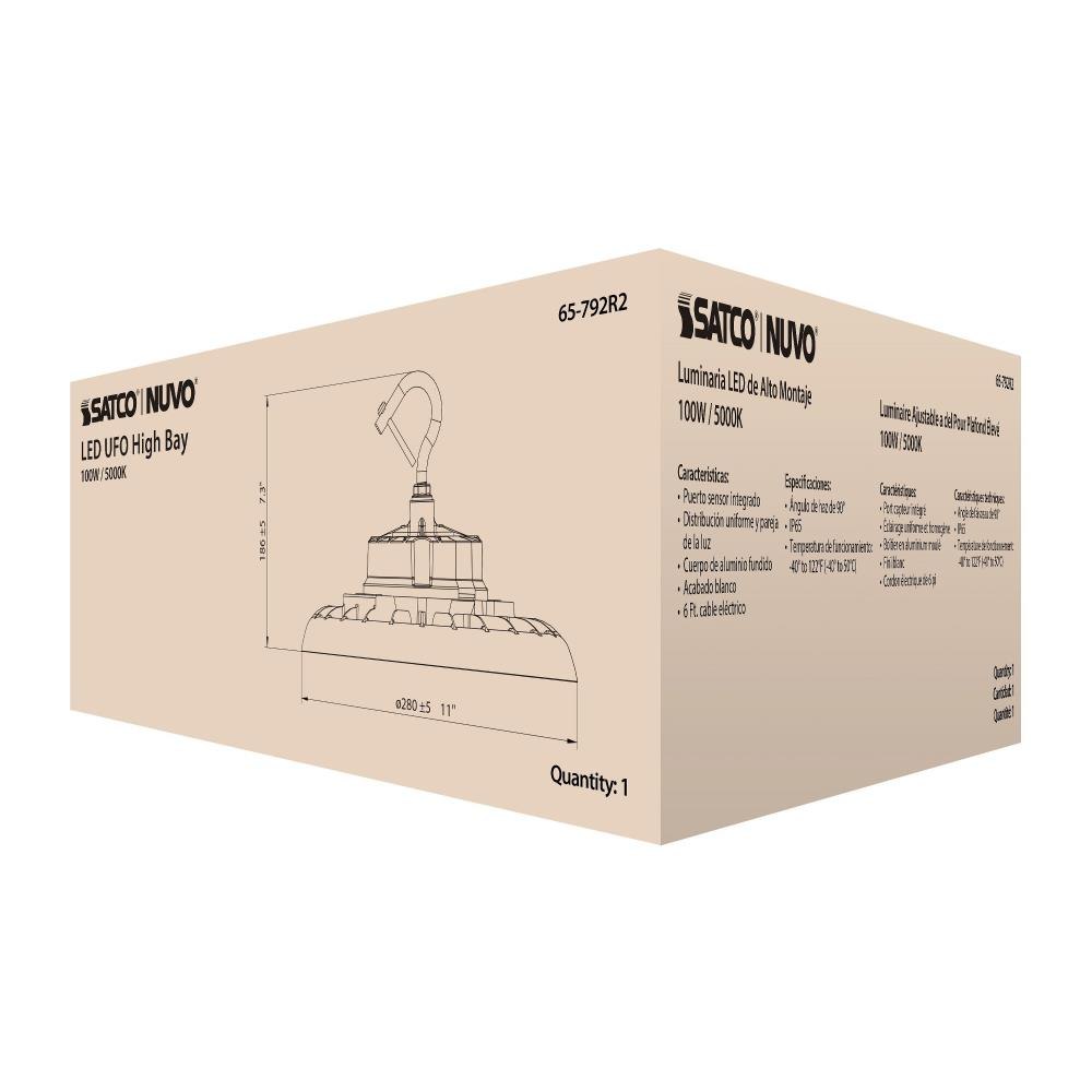 Satco's 65-781R2 100-watt, 4000K, black UFO LED High Bay offers superior value and meets the needs of numerous applications. A few add-ons that are available for purchase for this item include a pendant adapter, emergency battery back-up, protective wire guard, and a microwave sensor. This product also features dimming capabilities, 6KV surge protection, is wet location rated, and is also DLC Premium 5.1 listed.