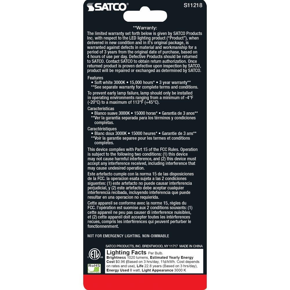 Satco - S11218 - 4.02 Inch 8W T10 LED Medium Base Replacement Lamp