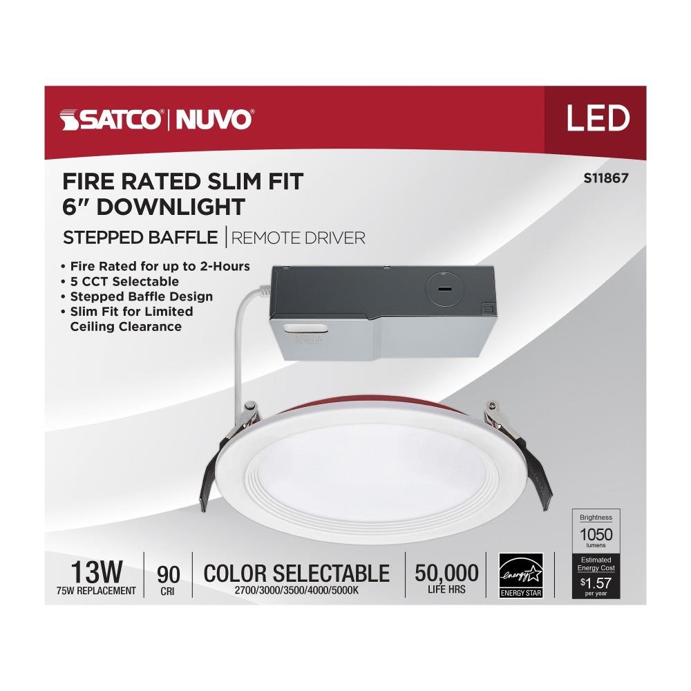 SATCO|NUVO's 6 inch Stepped Baffle Fire Rated Downlight is the perfect solution for installations with low ceiling clearance. Designed to provide exceptional illumination, this downlight provides two hours of protection in the event of a fire. Increase safety and peace of mind in residential, multifamily, and commercial applications.