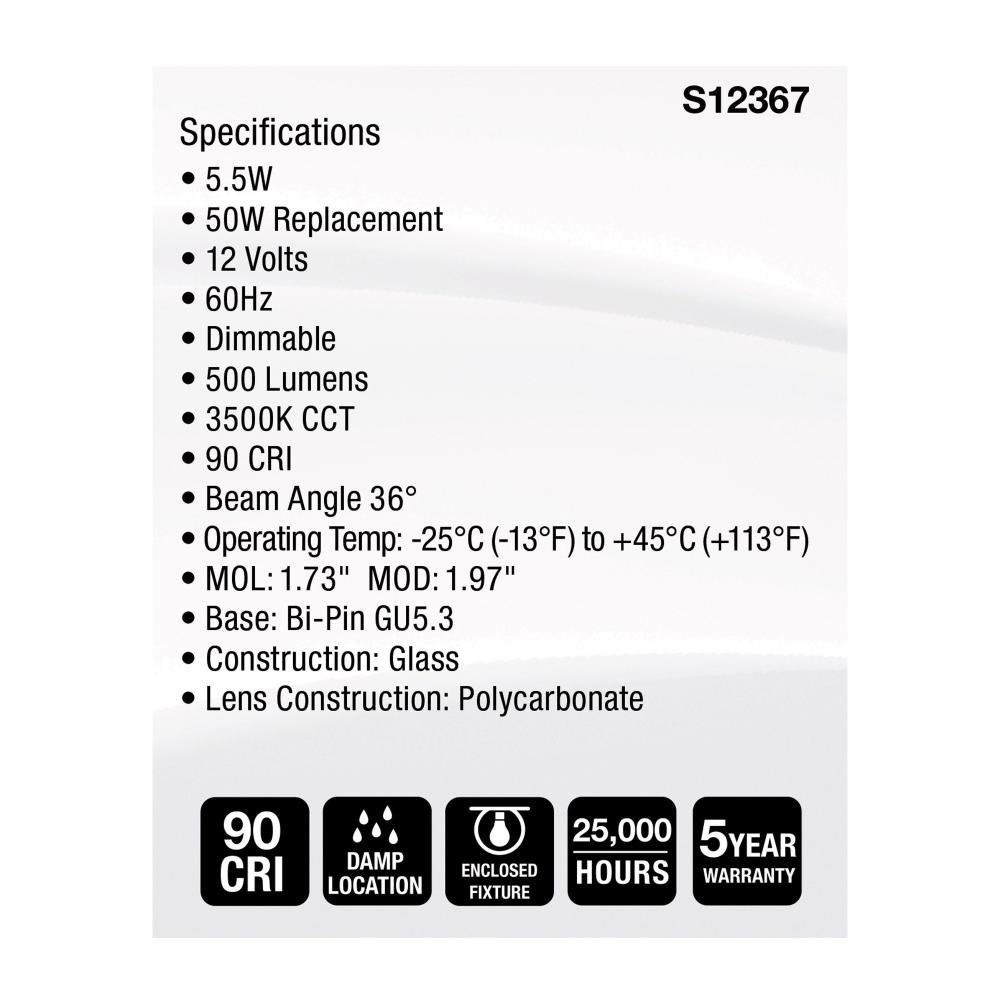 Satco - S12367 - 5.5W 3500K LED Floodlight GU5.3 Base Replacement Bulb-1.73 Inch Length and 1.97 Inch Wide