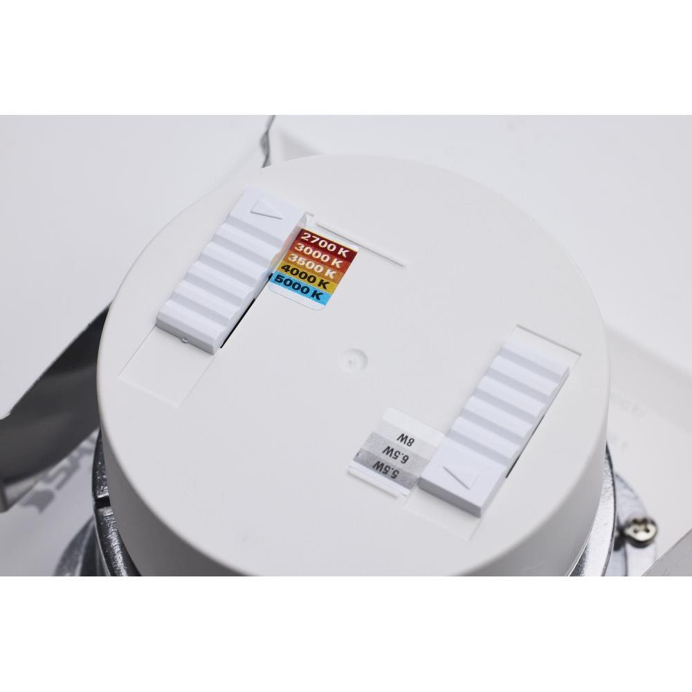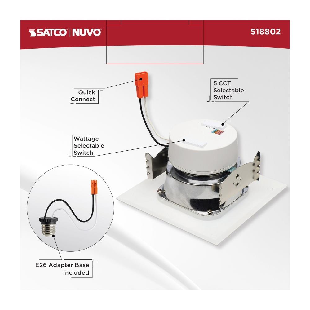 SATCO|NUVO's new S18802, LED Field Selectable Retrofit Downlight, is the effortless solution for upgrading recessed lighting in your space. With two on-unit switches, the adjustment of both the input wattage and color temperature is a breeze and allows for the perfect task driven customization of your lighting needs. This 4-inch square fixture offers a stepped baffle design reducing glare and adding dimension to your space. With its traditional look, this downlight will provide beautiful lighting in any environment.