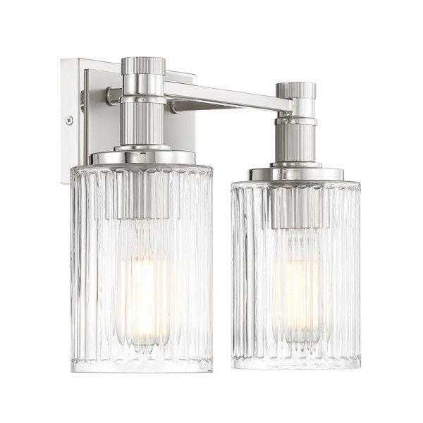 Add a big dose of shimmer with the Concord bath vanity light from Savoy House. Its ribbed glass shades are paired with ribbed detailing on the arms, boosting the inviting texture. Uses three standard-size bulbs of up to 60 watts per bulb. Bulbs are not included. Damp area rated. Must be installed as shown.