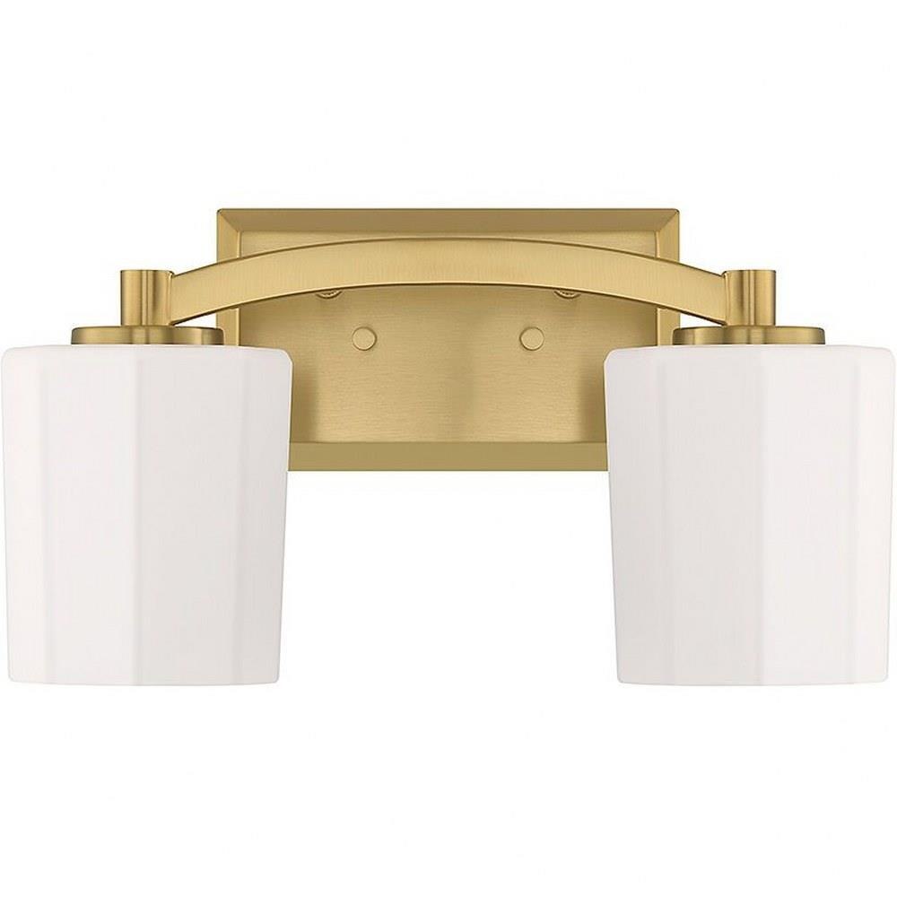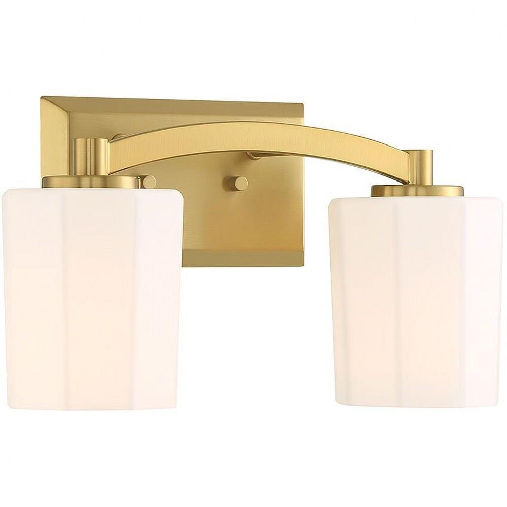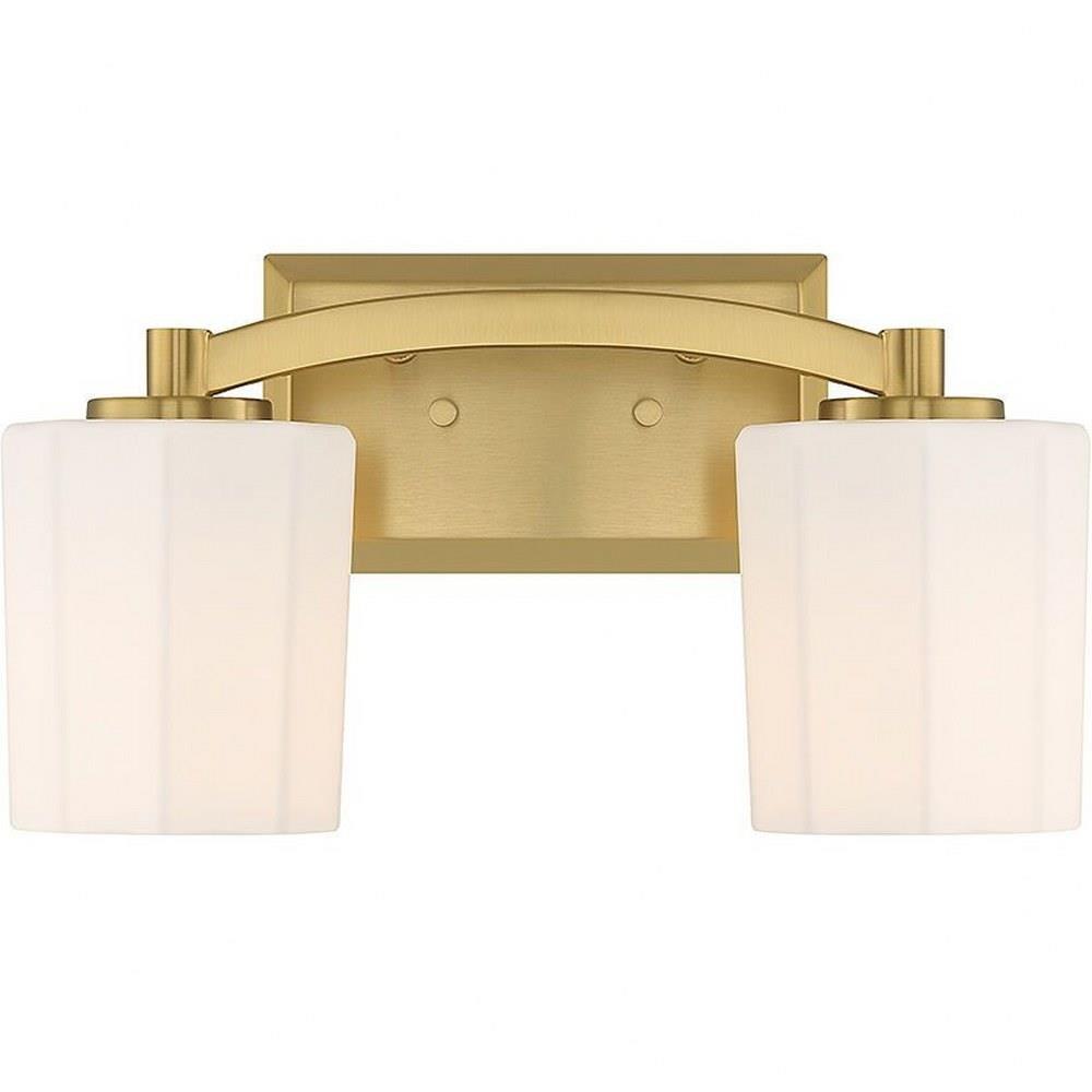 The Savoy House Whitney 2-Light Bath Vanity delivers a refined vintage aesthetic tailored for bathroom environments requiring both style and functionality. Measuring 8 inches in height and 14 inches in width, this fixture projects 6.50 inches from the wall, making it a compact yet impactful lighting solution. Its warm brass finish complements traditional and glam design schemes, while the curving arm design adds an element of visual intrigue.
