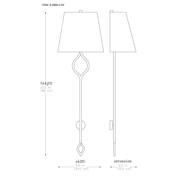 Infuse sophistication into your space with this 2-light sconce. Measuring 31.5" in height, 9.5" in width, and extending 6" from the wall, it accommodates two candelabra-size bulbs, up to 60 watts each. Bulbs are not included. This sconce is suitable for damp areas