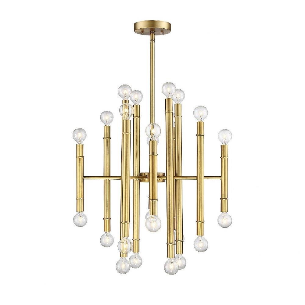 This bold, retro-inspired 24-light chandelier is sure to become the focal point of any room it illuminates! Natural Brass finish.
