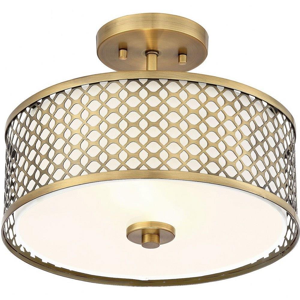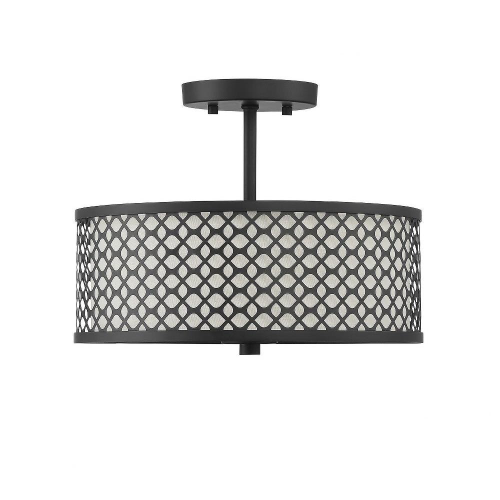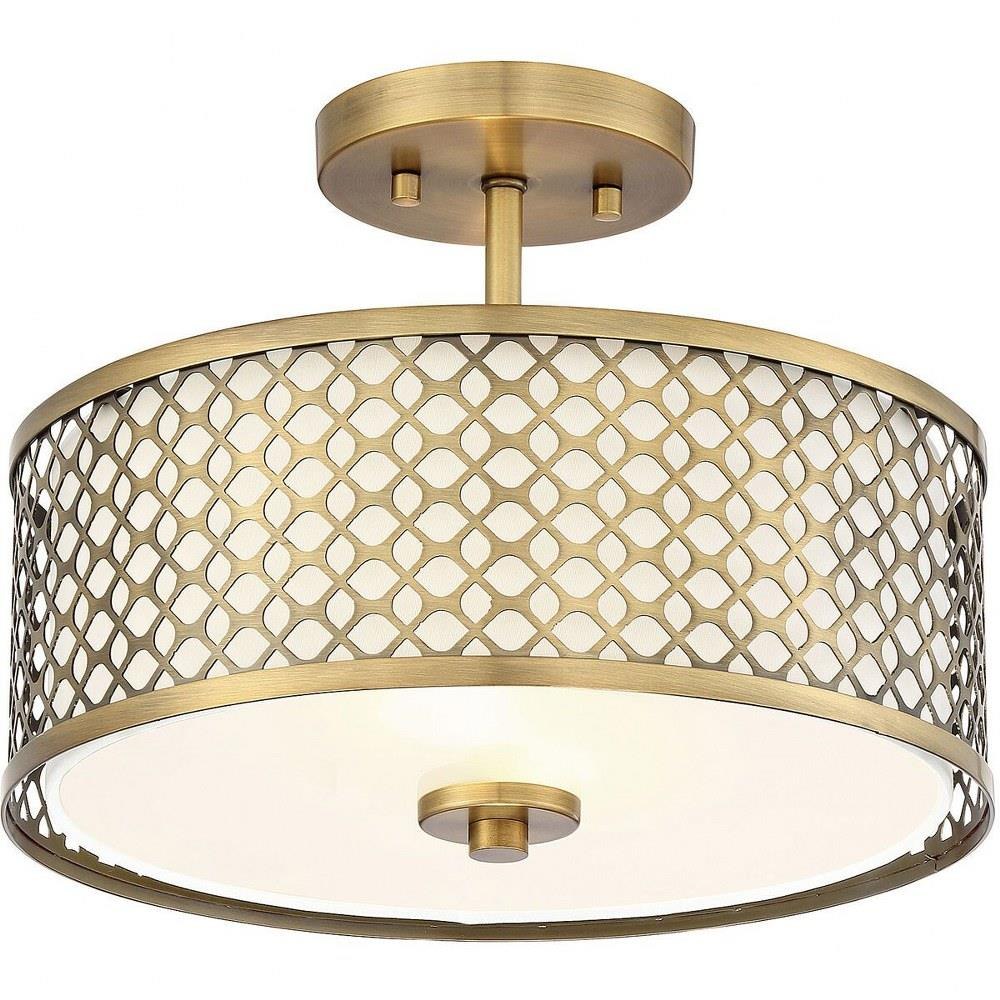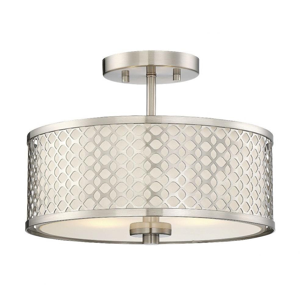 This 2-light ceiling semi-flush mount will add lots of style and useful light to any room! It flaunts a geometric pattern with mid-century inspiration and a crisp white fabric shade. Brushed Nickel finish.