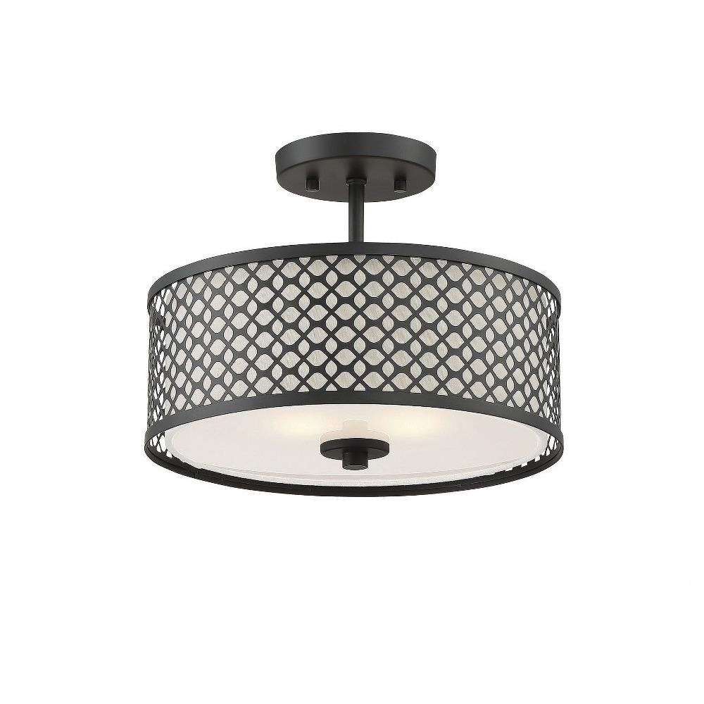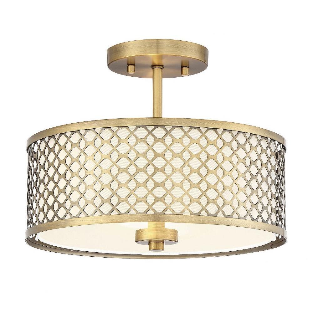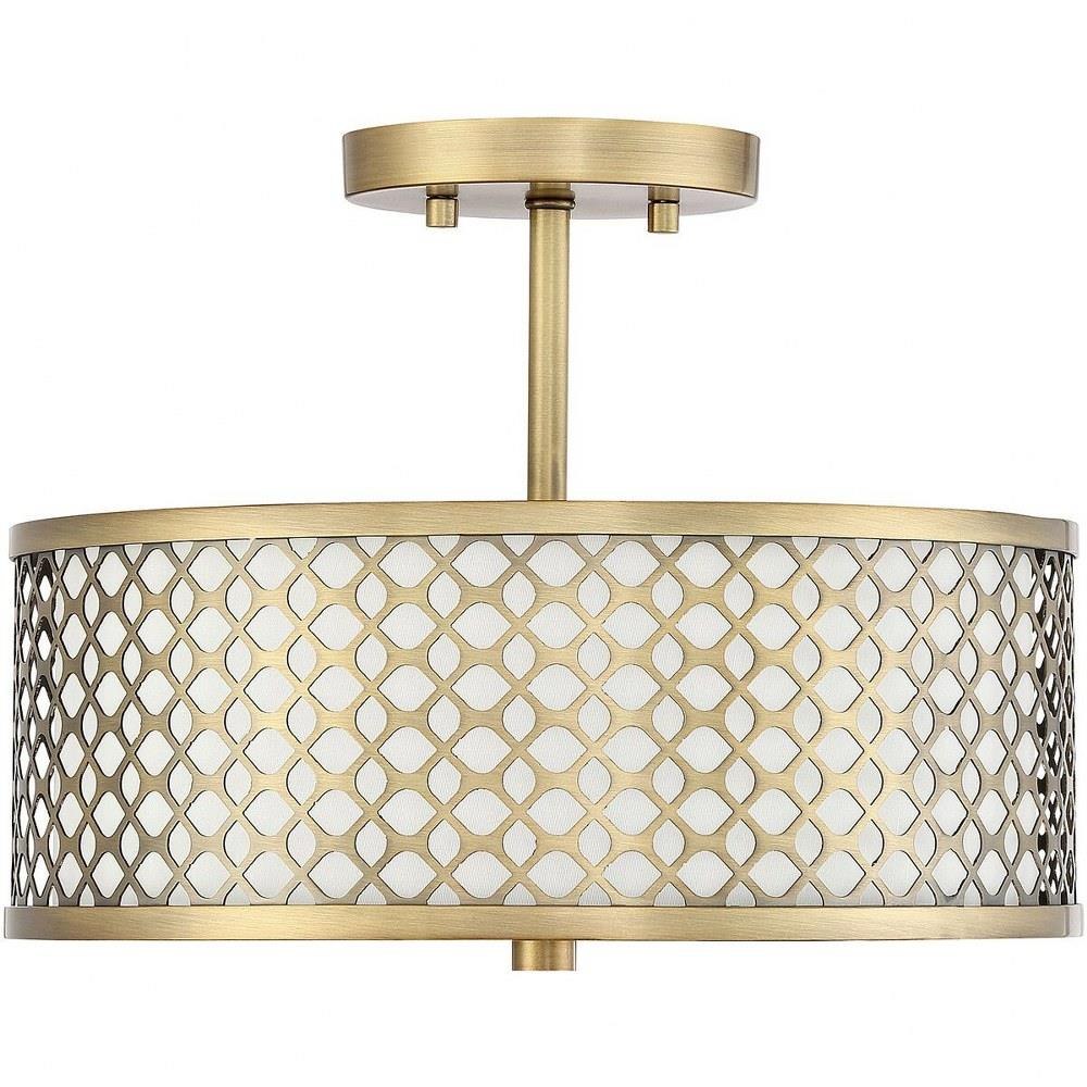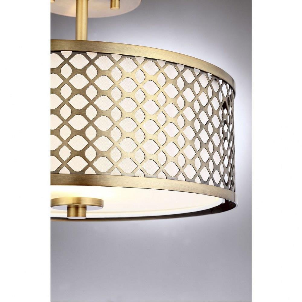 This 2-light ceiling semi-flush mount will add lots of style and useful light to any room! It flaunts a geometric pattern with mid-century inspiration and a crisp white fabric shade. Brushed Nickel finish.