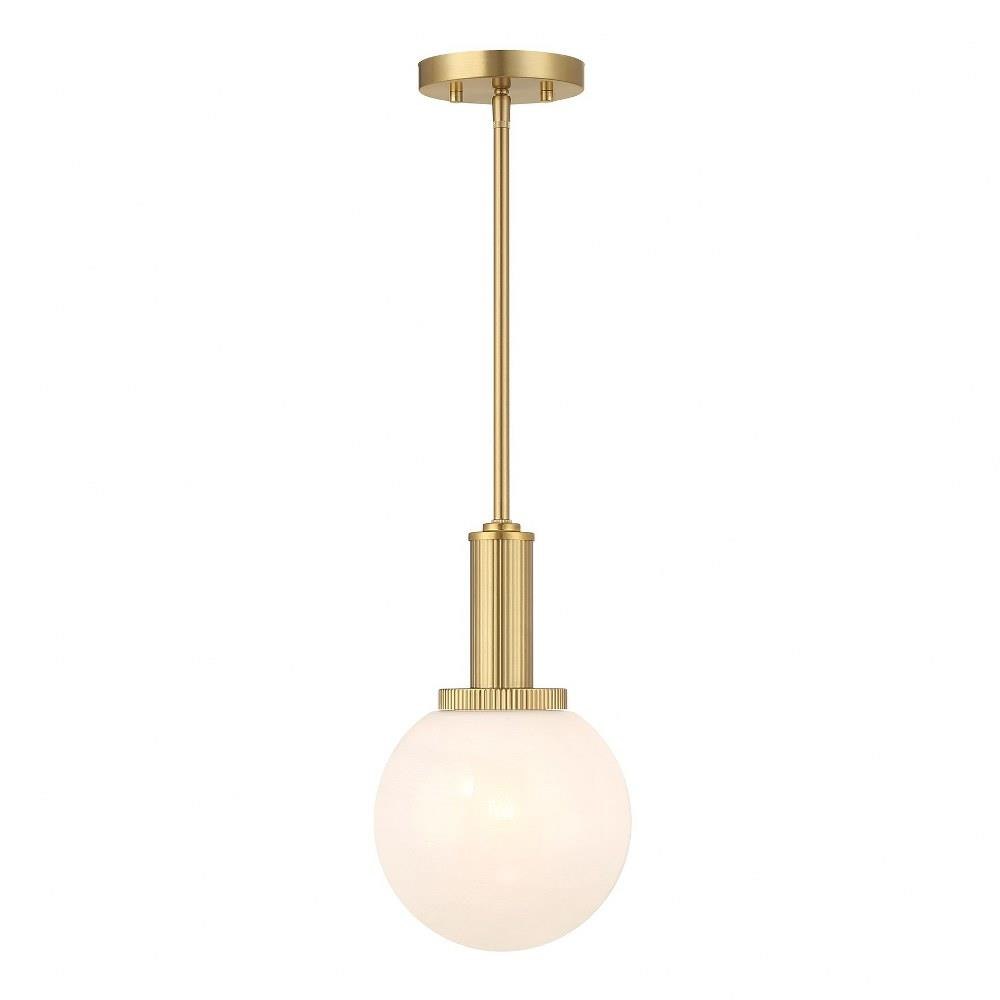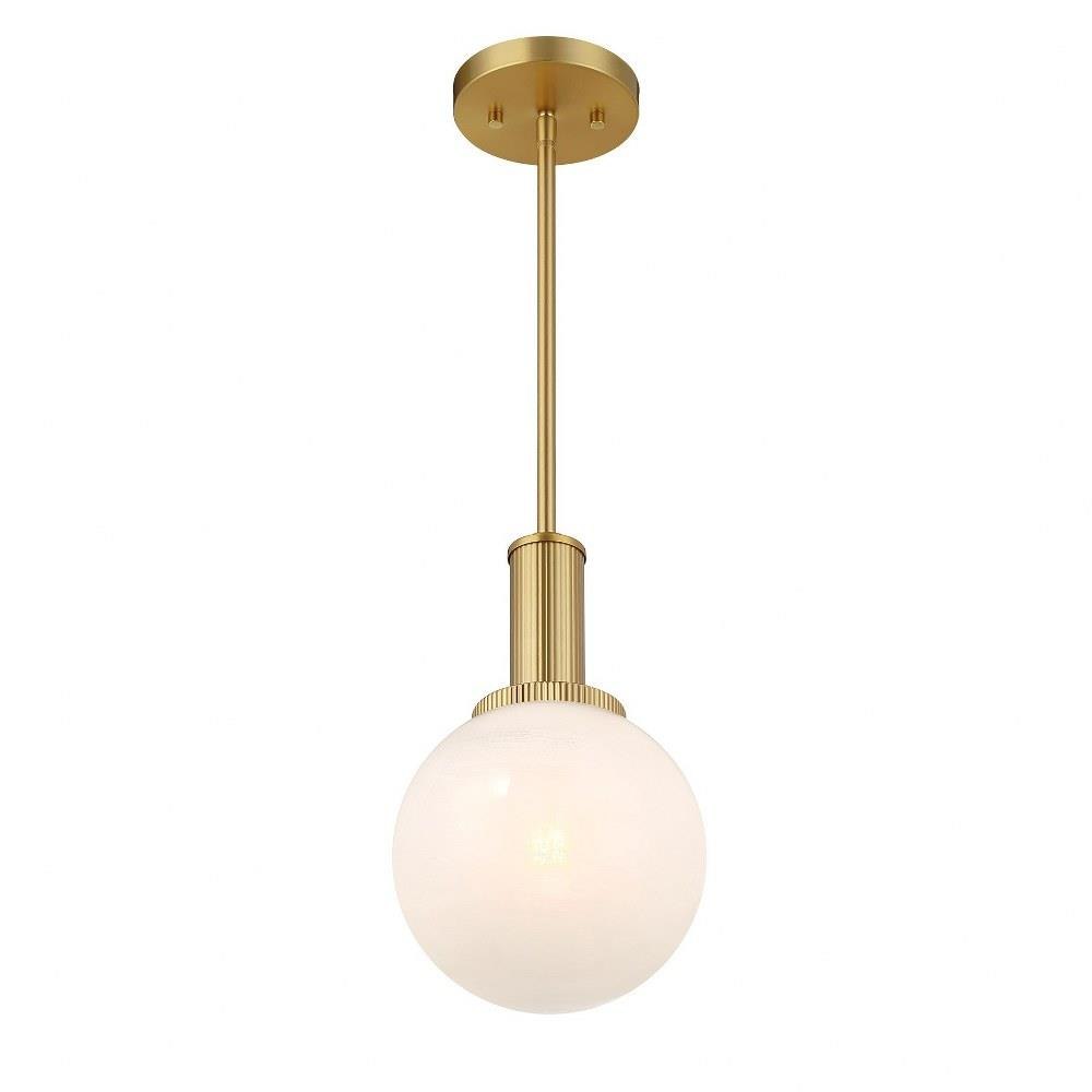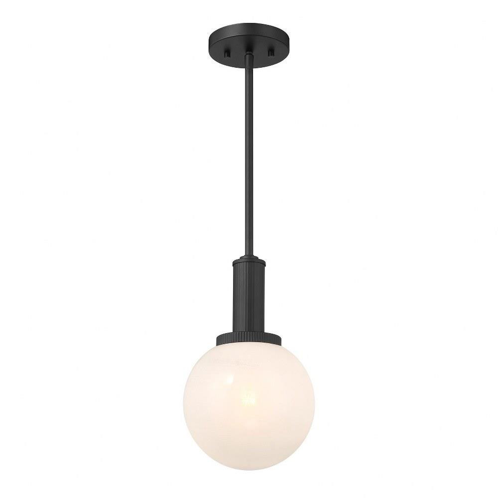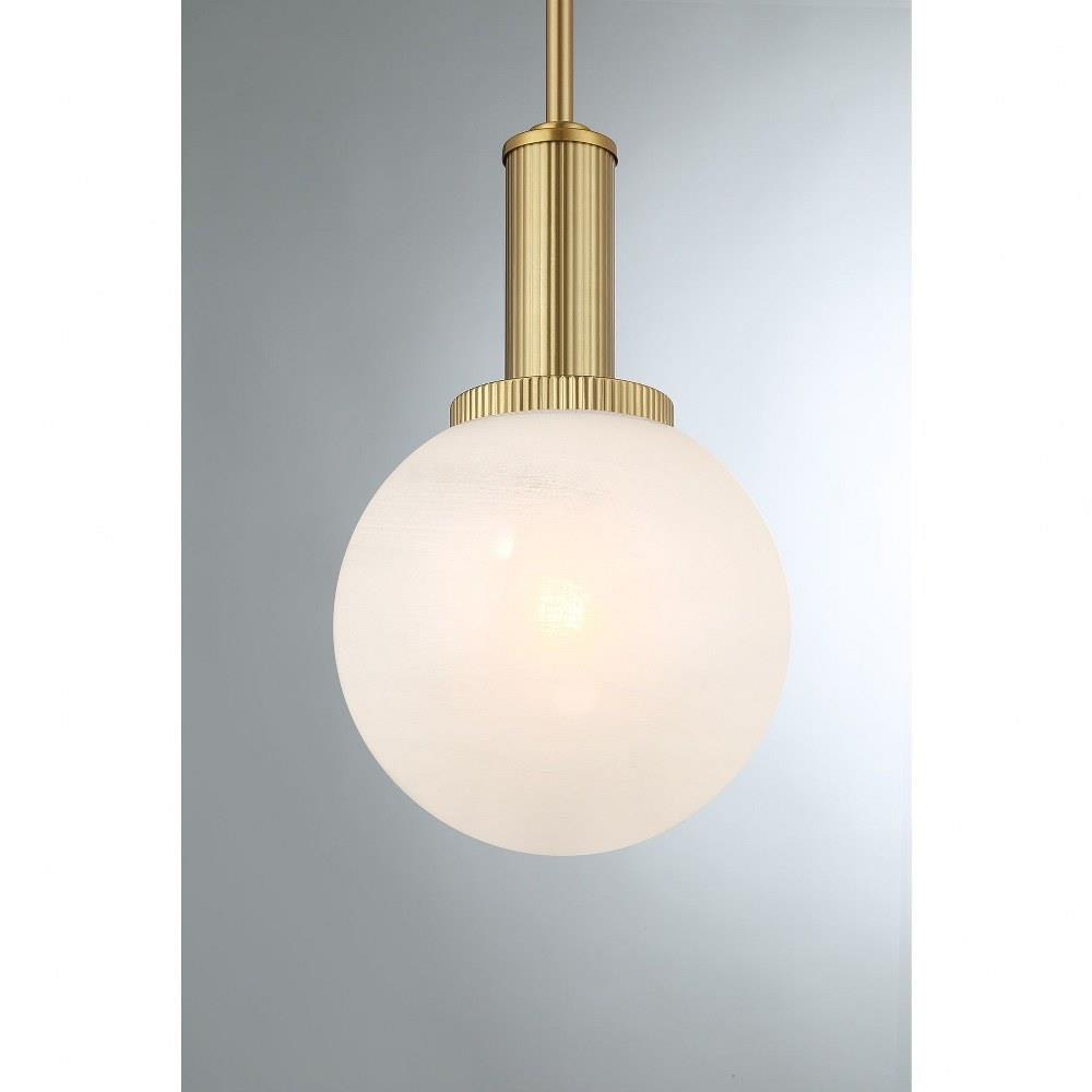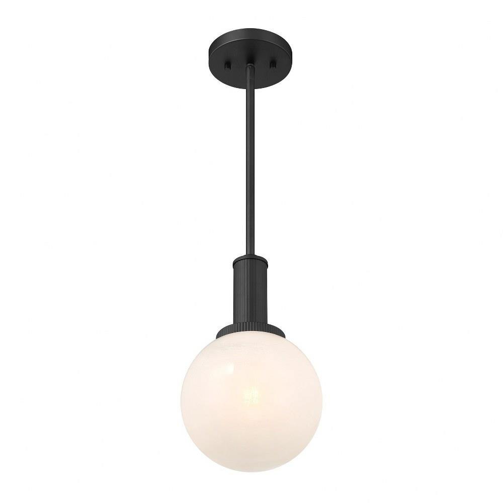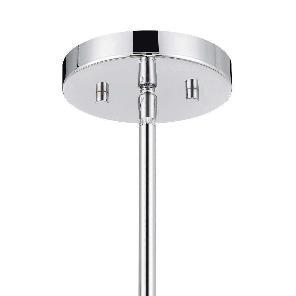 Add a little touch of magic to any room with this 1-light pendant. Its streamlined design allows a beautiful orb of strie glass to take center stage. The glass features dazzling swirls that draw the eye, soften the glow and work beautifully with the Chrome finish. Adjustable height ranges from 13.25" to 67.25". Comes with four 12" downrods and one 6" downrod. 8" width. Uses 1 standard size bulb of up to 60 watts. Bulb not included.