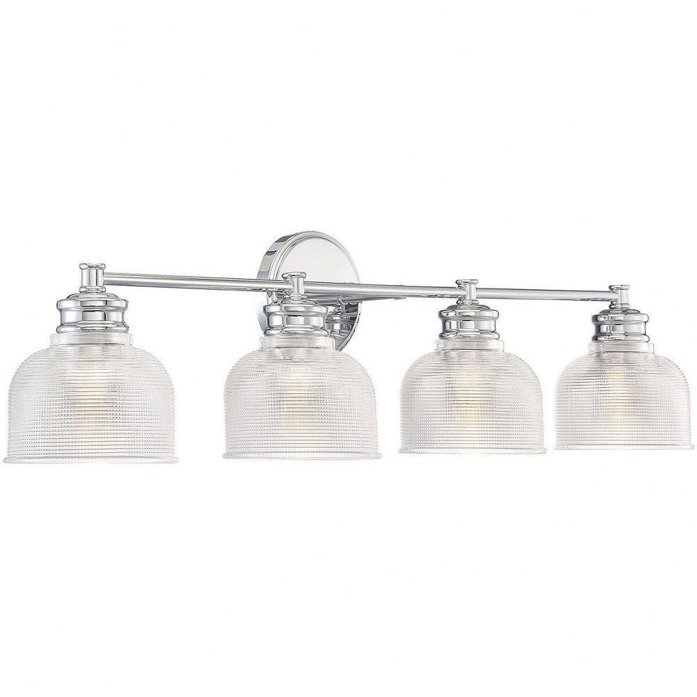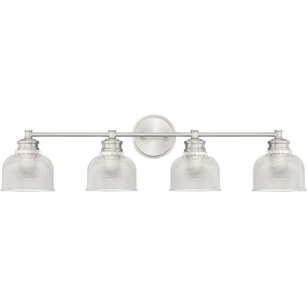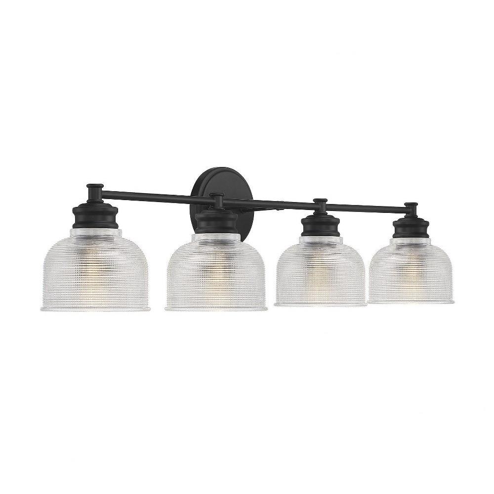 Illuminate your space with the 4 Light Bath Vanity, a stunning blend of mid-century modern and farmhouse styles. Standing at 9.25 inches tall and 32 inches wide, this exquisite fixture features a durable construction of glass and metal, ensuring both elegance and longevity. Designed to accommodate four incandescent bulbs, it provides ample lighting for your bathroom while adding a touch of traditional charm to your decor. Perfect for enhancing any modern or classic setting.
