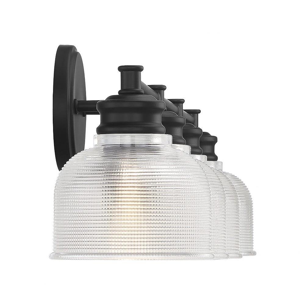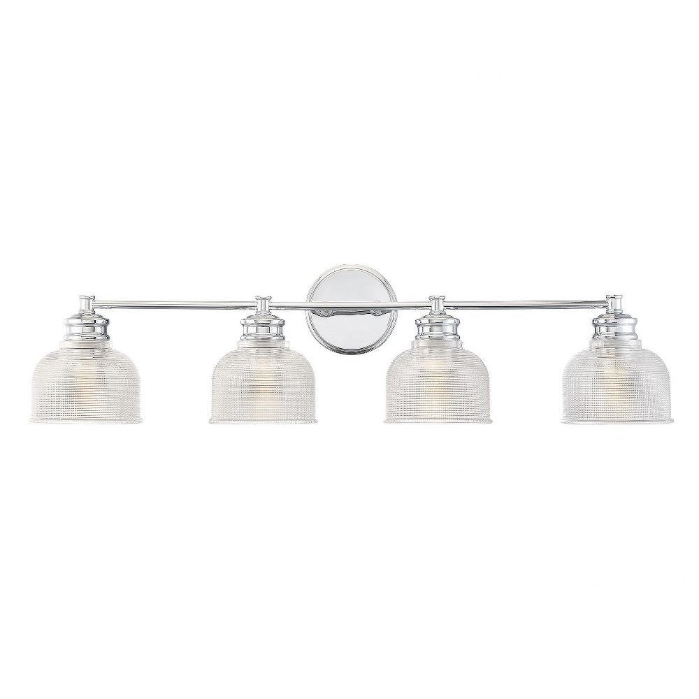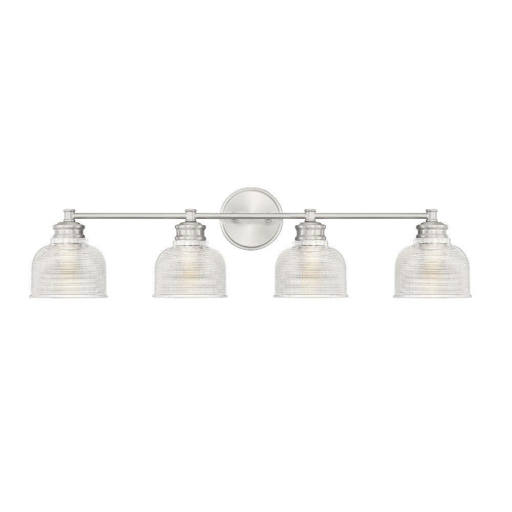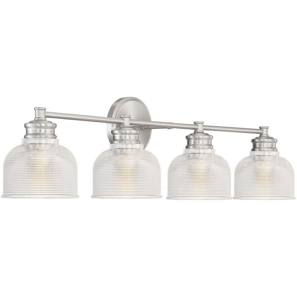 Illuminate your space with the 4 Light Bath Vanity, a stunning blend of mid-century modern and farmhouse styles. Standing at 9.25 inches tall and 32 inches wide, this exquisite fixture features a durable construction of glass and metal, ensuring both elegance and longevity. Designed to accommodate four incandescent bulbs, it provides ample lighting for your bathroom while adding a touch of traditional charm to your decor. Perfect for enhancing any modern or classic setting.